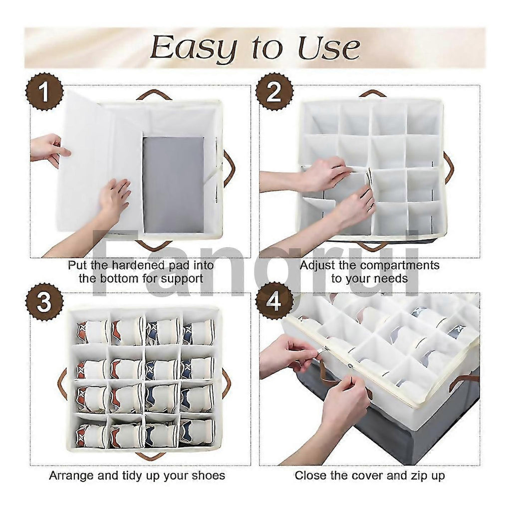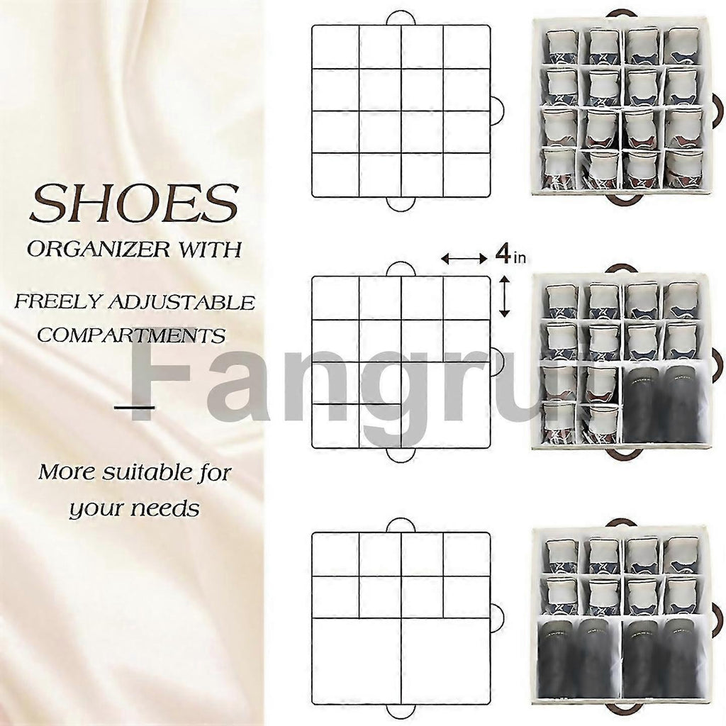 Fangrui Product Details Fangrui Product Details [large Capacity Shoe Organizer]designed To Hold 16 Pairs Easily, The Organizer Features Adjustable Dividers That Create Compartments Of Inches Or Merged To 8x8 Inches To Fit Shoe Types Including Sports Shoes, Heels, And Boots. For Optimizing Space In Your Closet With Its 12-inch Depth Compartments. [ Multifunctional Storage Solution]constructed From Robust Oxford Cloth And Reinforced With Sturdy Side Panels And Bottom Board, This Shoe Storage Box Prevents Collapsing And Can Be Utilized For Multiple Storage Needs. Transform It Into A 17x17x12 Inches Large Box For Clothes, Toys, Or Books When Not Storing Shoes. [elegant Design And Protection]the Shoe Storage Organizers Appealing White And Gray Color Scheme Enhances Room Aesthetics While Its Dustproof And Waterproof Fabric Keeps Contents Protected. Suitable For Placement In , Wardrobes, Or Balconies, Maintaining Cleanliness With Its Stain- Base. [user-friendly Features]equipped With A Transparent , Dual Zippers For Easy Access, Three Side Handles Fo