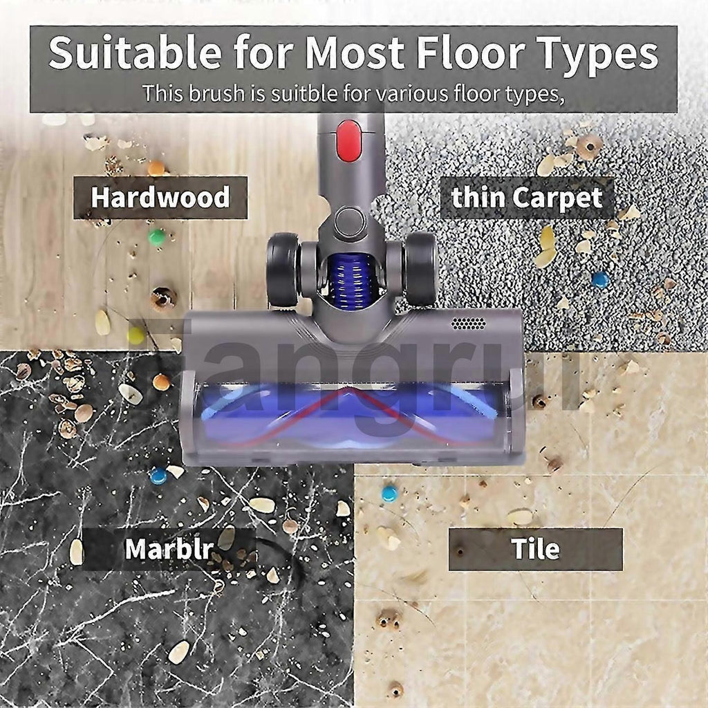 Fangrui Product Details Wide Compatibility: This Quick-release Turbo Brush Head Is Compatible With For V7 V8 V10 V11 V15 Cordless Stick Vacuum Cleaners. (note: This Brush Doesnt Fit V6, V12, All Slim Series, Ball Series And Dc Series. Please Check Your Vacuum Model Before Purchasing.) V-shape Bristle Brush: This Floor Brush Features A V Shape Bristle Roller, Which Collects More Dust Dirt Effectively, With The Enlarged Suction Mouth, All Dust Be Sucked In Within Seconds Without Any Tangling Or Clogging. Also, The Bristle Roller Cleans More Deeply On Short Carpets Compared With Soft Roller Brush. Miss Any Dirty Spot: This Floor Brush Has 4 Front Led Headlights, Which Illuminate The Surfaces So You Have Clearer View Of Where Is Clean Or Not. Bigger Smoother Wheels: The Floor Brush Glides Under Furniture And Cabinets Easily To Dust And Debris That Is Hard To Reach. The 2 Big Wheels Hassle Free To Push Back Forth. Clean ! Model: For V7 V8 V10 V11 V15 Type:vacuum Floor Brush Head Vacuum Part Type: Roller Brush C
