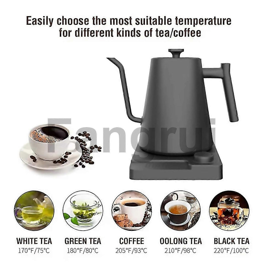 Fangrui Product Details Experience The Brew With Our Gooseneck Electric Kettle, Designed For The Coffee And Tea Aficionado. This Kettle Features Precise Temperature Control, Allowing You To Adjust The Heat To Suit Your Beverages Specific Brewing Requirements. Whether Youre Preparing A Delicate Green Tea Or A Robust French Press Coffee, The Accuracy Of Our Kettle Ensures Your Drink Is Every Time. Constructed From Premium Stainless Steel, The Kettles Gooseneck Spout Provides Optimal Pour-over Control, Making It A Favorite Among Baristas And Tea Lovers. Enhance Your Morning Routine And Savor The Nuanced Flavors Of Your Favorite Beverages With Our Sleek, Efficient Electric Kettle. Colour:black Material:stainless Steel Plug Type:uk Plug,it Applies To Malaysia, The United Kingdom And So On. Voltage: Ac220v Package Contents: 1 * Hot Water Kettle 1 * Heating Plate Only The Above Package Content, Other Products Are Not Included. Note: Light Reflection And Different Displays May Cause The Color Of The Item In The Pict