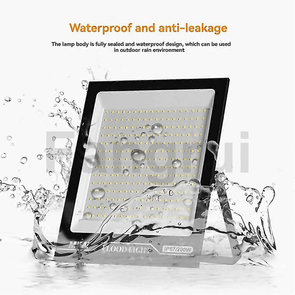 Fangrui Product Details High-performance Led Flood Lights: These Led Floodlights Meet Various Lighting Needs, From Garden Illumination To Street Lighting. Each Unit Is Designed To Offer High Luminosity And Energy Efficiency. Durable And Weather-resistant: With An Ip67 Waterproof Rating, These Lights Are Built To Withstand All Weather Conditions, Making Them Ideal For Outdoor Environments. The Robust Construction Ensures Longevity And Consistent Performance. Versatile Installation: For Illuminating Large Areas Like Streets, Gardens, And Walls, These Lights Can Be Easily Mounted And Adjusted To Focus Light Where Its Most Needed. Product Name:led Floodlight Power:200w Voltage:ac220v Led Color:warm White (3000k) Waterproof:ip67(can Not Put Into Water) Due To Different Batches, There May Be Differences In Product Appearance And Printed Text, Which Will Not Affect Use. Colour:as Shown Material:abs+aluminum Package Contents: 1 * Shooting Light Only The Above Package Content, Other Products Are Not Included. Note: Light Refl