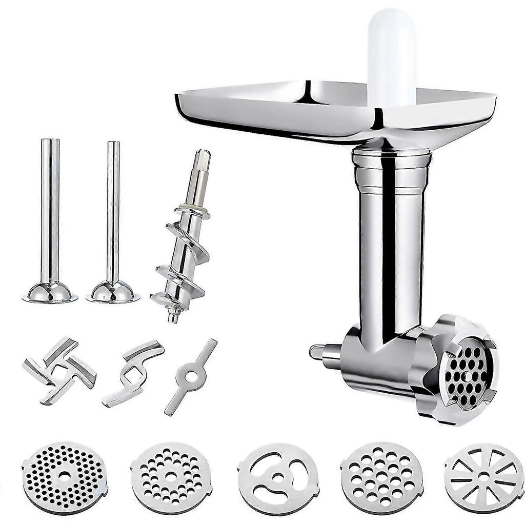 Fangrui Product Details High Precision Aluminum Food Grinder Attachment Specially Designed For All Stand Mixers.superior In Terms Of Speed. Note:its Not Belong To Expands Your Stand Mixers Flexibility, To Grind Meat, Fruits, Vegetable, Hard Cheeses, Bread Crumbs And Stuff Sausage And More. Fresh Homemade Meatball, Burger And Sausage Are So Easy To Make. High Cost Performance, Cheaper Than Stainless Steel Meat Grinder, More Than Plastic Meat Grinder,be Your The Most Abundant Accessories ,includes Grinding Blades,grinding Plates,sausage Stuffers, Food Pusher , Clean Brush Most Parts Are Diecast Aluminum Colour:silver Material:metal Size:16.5x5.6cm/diameter: 5cm Package Contents: 4* Grinding Discs 2* Sausage Tubes 3* Grinding Blades 1* Grinding Disc 1* Food Mover Only The Above Package Content, Other Products Are Not Included. Note: Light And Different Displays May Cause The Color Of The Item In The Picture A Little Different From The Real Thing. The Measurement Allowed Error Is +/- 1-3cm.