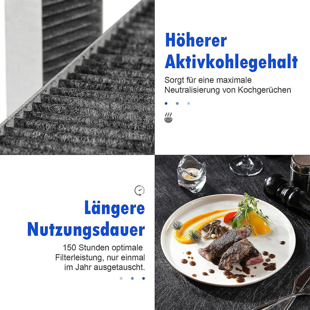 Compatible with: The filter is suitable for Bora Pure / X Pure / S Pure hobs with cooker hood. Compatible models, please refer to the picture.??Functionality??: The activated carbon filter can filter the air very efficiently, neutralize the smell produced during cooking, thus ensuring fresh air in the kitchen.??Recommendations??: The cooker hood filter is a one-time consumable item, we recommend replacing it every 6-12 months depending on cooking habits.??Product Size??: The size of the active carbon filter is 425 x 130 x 50 mm and is easy to install.??Package includes??: 2 pcs replacement filters. If you have any questions about products and machines, please feel free to contact us.