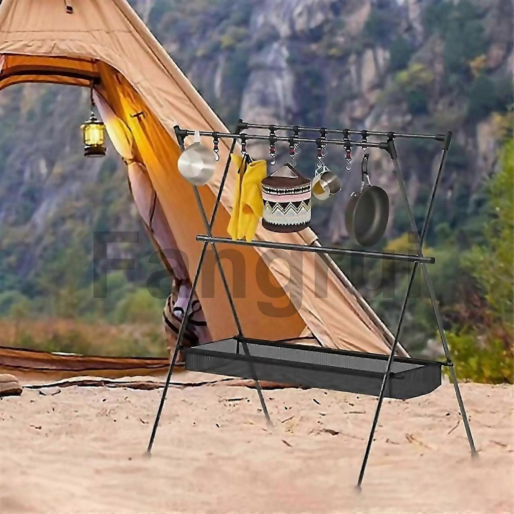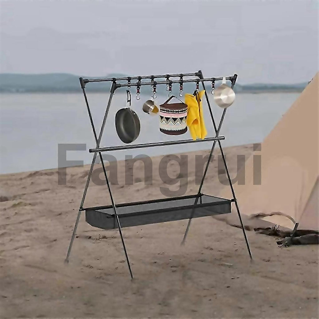 Threebar Frame Camping Rack Folding Ultralight Camping Tripod Travel Sundries Hanger 50x68x88cm