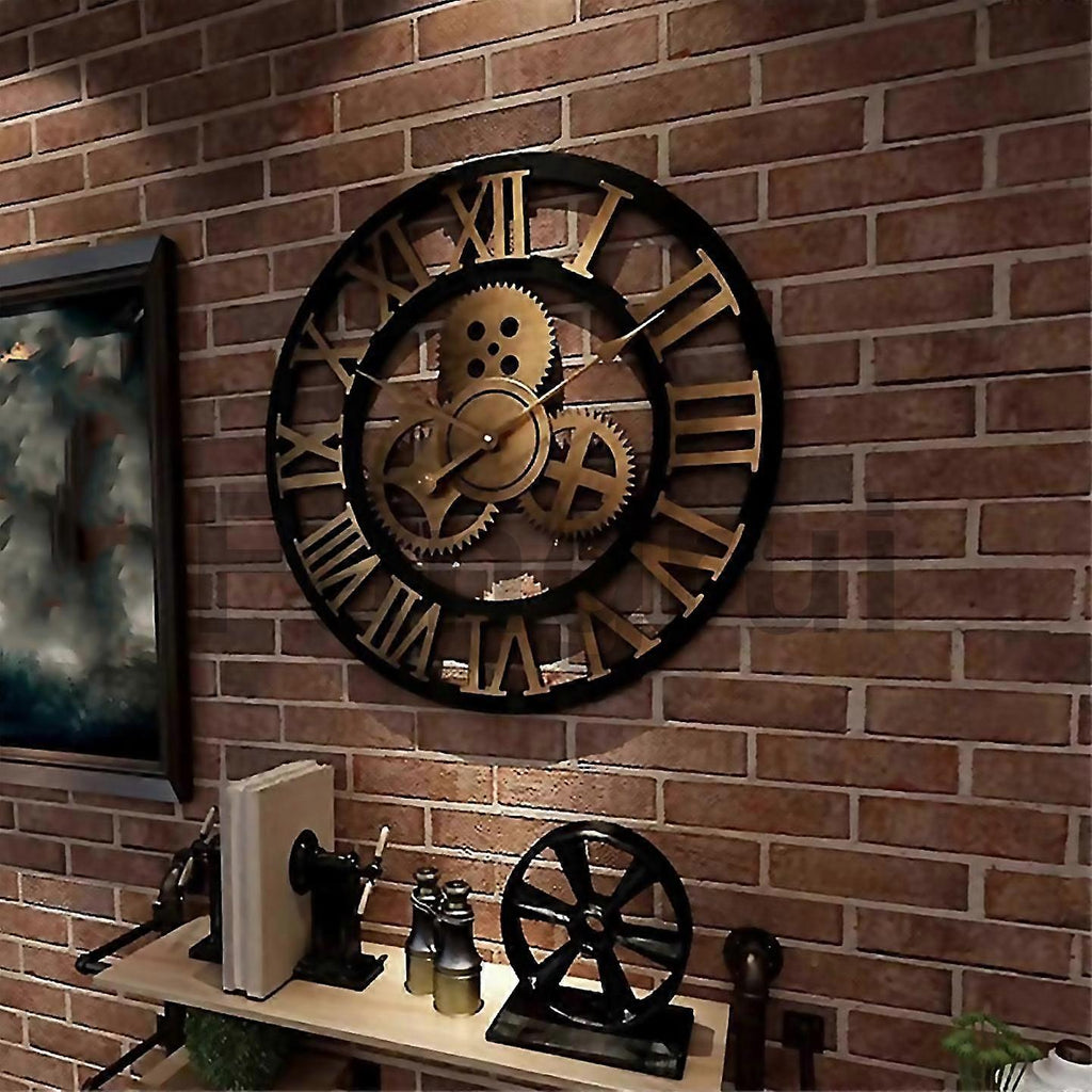 Fangrui Product Details Made Of High Quality Wooden, Durable And Safe To Use. Industrial Gear Wall Clock Design, Creative And Fashion. High Quality Movement, Accurate Pointer, Long Service Life. With Hanging Hole Behind The Clock, Easy To Hang And Remove It. Vintage Wall Clock, Decoration For Bedroom, Kitchen, Living Room, Cafe, Bar Etc.iving Room Office Bar Wall Art Decor Horologe Product Category: Wall Clock Power Type: Battery Movement Type: Quartz Colour:as Shown Material:metal Size:diameter 40cm Package Contents: 1 X Wall Clock Only The Above Package Content, Other Products Are Not Included. Note: Light Reflection And Different Displays May Cause The Color Of The Item In The Picture A Little Different From The Real Thing. The Measurement Allowed Error Is +/- 1-3cm.