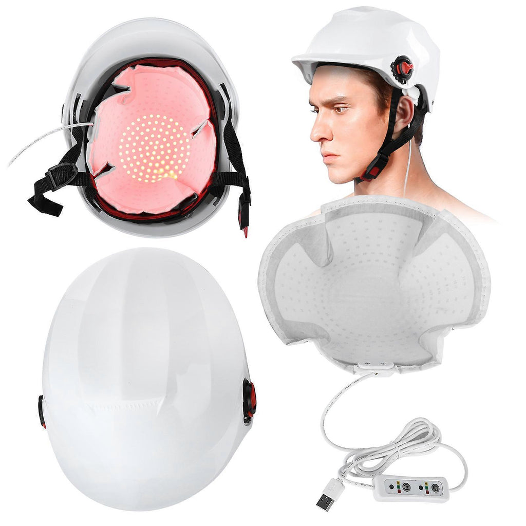 Features 1??3 gears of energy adjustment, USB interface, adjustable brightness, no ultraviolet rays, no skin damage. 2??Suitable for seborrheic alopecia, hereditary alopecia, post?planting alopecia, stress alopecia, alopecia areata, postpartum alopecia, poor hair quality (greasy, itchy, dry) congenital loosening, suitable for both men and women. 3??The light wavelength is 630?660 nanometers. After red light is irradiated, the activity of mitochondrial catalase increases, enhances cell metabolism and protein synthesis, promotes local blood circulation, and controls infection. 4??Containing 102 irradiation points, scientifically evenly distributed light sources, all covering the scalp, the head emission wavelength is accurate, giving more powerful energy to the hair follicles to achieve the effect of hair growth. 5??Can regulate oil secretion, nourish hair follicles, care for the scalp, and create a good hair growth environment. 6??Strong penetration, penetrate subcutaneous fat, wake up hair follicles, improve hair loss, and reproduce the richness and toughness of hair. Specification Condition: Item Type: Hair Growth Helmet Material: ABS Helmet Color: White Number of Lamp Beads: 102pcs Power: 5-12W Light Wavelength: 630nm-660nm Instructions for Use: Generally 2-3 times/day, 7 days is a course of treatment, 3-4 days/week, 20-30 minutes each time Cycle: 4-18 weeks, improve scalp oil secretion, and hair loss will return to normal levels; 8-26 weeks, improve hair growth environment, make hair thicker, fuller, and healthier; 26-52 weeks, during the safe growth cycle, the number of hairs increases significantly, and the hair follicle germinal system resumes normal functions. Usage: 1. Wash the hair loss area before use. 2. Spray the hair growth liquid on the affected part of the hair loss, repeatedly press and rub for 10-20 minutes, then put the hair growth helmet on the head and irradiate the affected part. 3. To prevent the helmet from getting dirty, a transparent film (such as plastic wrap) can be placed between the scalp and the helmet. Package List 1 x Hair Growth Helmet 1 x Lamp Bead Pad (102pcs Lamp Beads) 1 x Manual