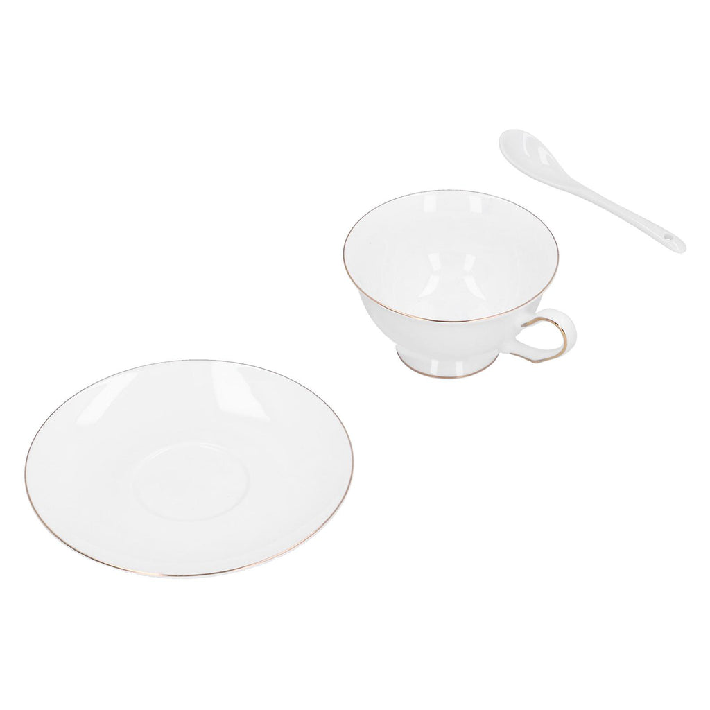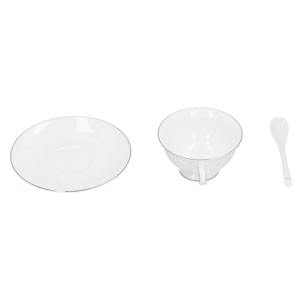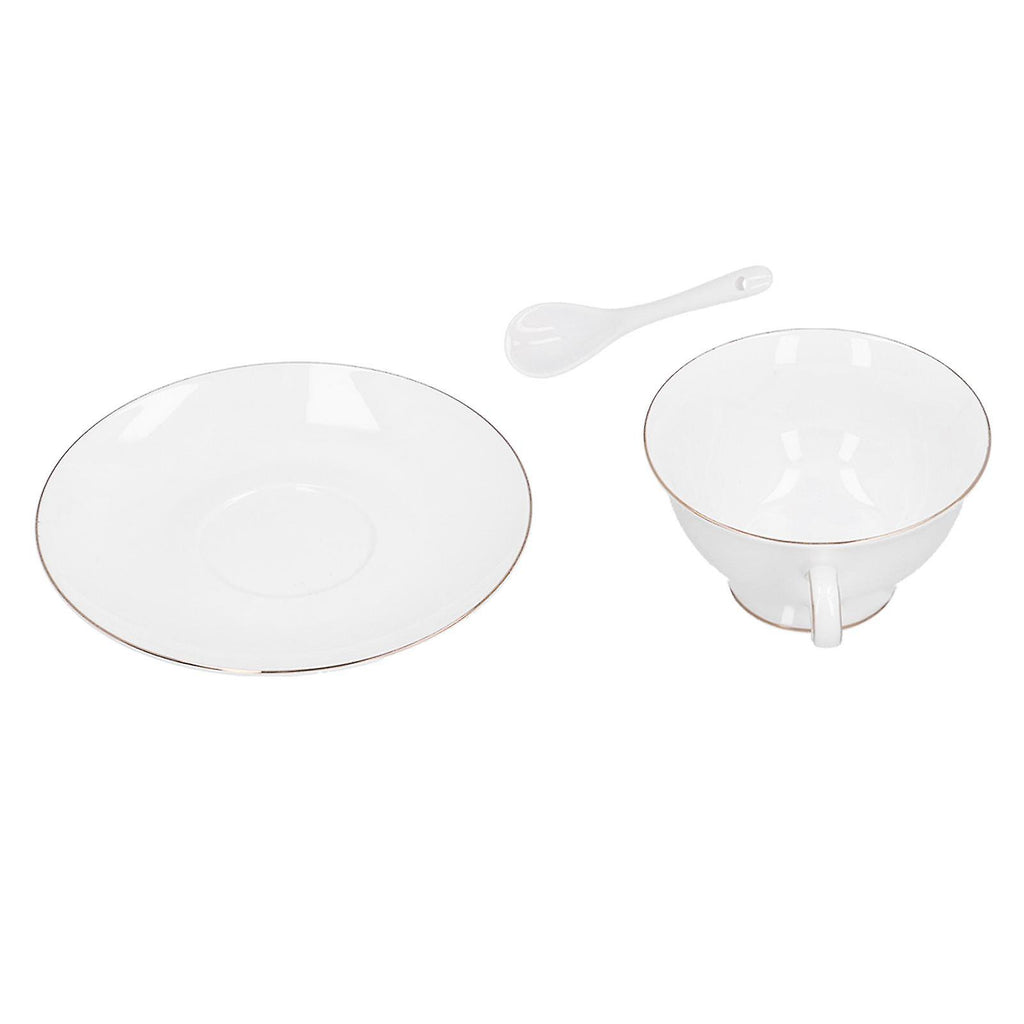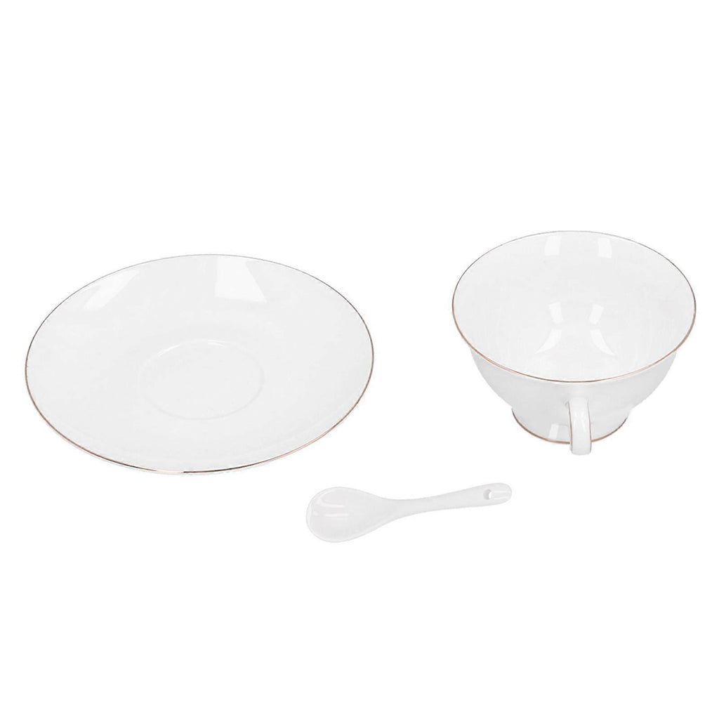 Features 1??Perfect for latte art, cappuccino, coffee, hot chocolate, and other favorite beverages. 2??High bone china, high temperature resistance, no problem with microwave heating. 3??Small and delicate appearance, create a dining experience your guests won't soon forget. 4??These cups are in the right size and thickness to keep the coffee warm. 5??The ergonomically designed handle makes it easy to pick up the cup without burning your hands. Specifications Item Type: Coffee Cup Material: High Bone China Color: White Cup Mouth Diameter: Approx.10.5cm / 4.1in Cup with Handle Length: Approx.13cm / 5.1in Height: Approx.6cm / 2.4in Saucer Diameter: Approx.15cm / 5.9in Spoon Length: Approx.12.7cm / 5in Weight: Approx. 1523g / 53.7oz Package List 4 x Coffee Cup 4 x Saucer 4 x Spoon