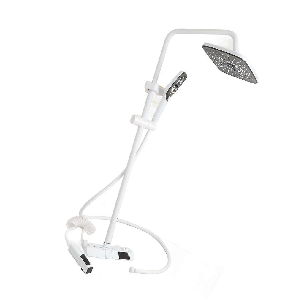 Features 1??Easy Button Design: This NPT 1/2 bathroom shower head set comes with a smooth button design, making it convenient to adjust both water temperature and pressure for an optimal shower experience. 2??Smooth Spraying: The beautifully designed shower head sprays water evenly, providing a soothing shower experience that lets you thoroughly enjoy bath time. 3??High Strength Material: The rainfall handheld shower combo is made from brass, stainless steel and ABS materials for a robust and long lasting build. It is designed to withstand long term use without easy damage. 4??Easy Installation: Rainfall shower head with handheld sprayer combo is easy to install, balancing aesthetics with practicality. It is the ideal choice when looking to craft a comfortable bathroom space. 5??Bathroom Essential: This shower equipment is a must have for all domestic bathrooms. It is suitable for various bathroom decoration styles, enhancing both style and comfort in your bathroom. Specifications Item Type: Piano Key Showerhead Material: Brass body + Stainless steel + ABS Connection Size: NPT 1/2; G 3/4 Functions: Independent piano key control; High temperature baking process; Pressure boosting nozzle; Four function water outlet; Full sky star large top spray; Three mode handheld; Hydroelectric digital display; Temperature control valve core, water heater universal, not distinguish between hot and cold water direction Weight: Approx. 3650.00g / 128.75oz Package List 1 x Shower Head 1 x Shower Nozzle 2 x Metal Water Pipe 2 x Water Pipe 1 x Control Panel 2 x Control Switch 2 x Adapter 2 x Cap 2 x Washer 1 x Plastic Cover 1 x Screw Package 1 x English Instruction Manual