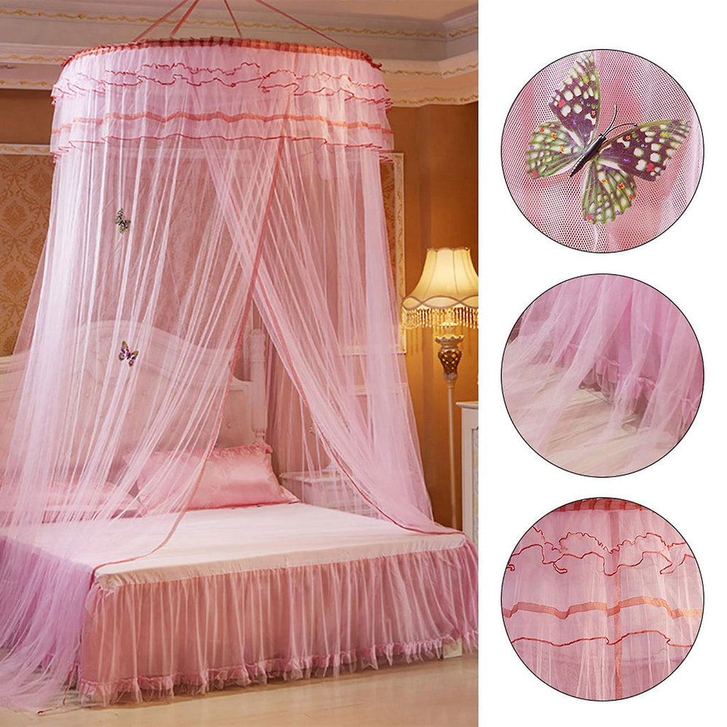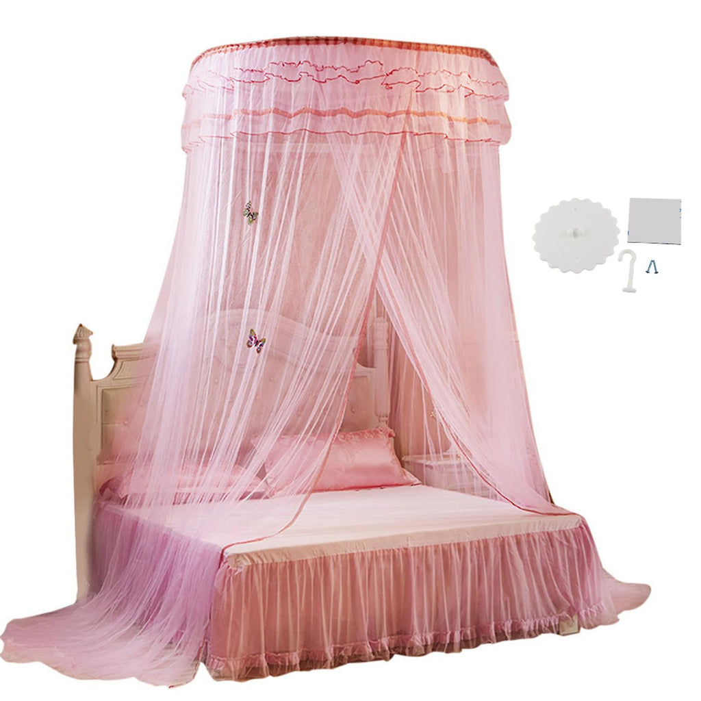 Breathable Round Canopy Lace Princess Style Mosquito Net Bed Curtain Netting (Pink)
