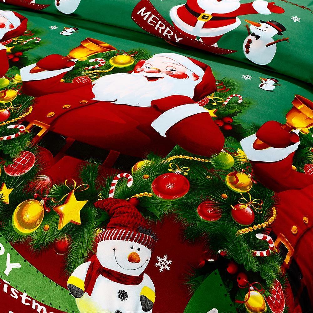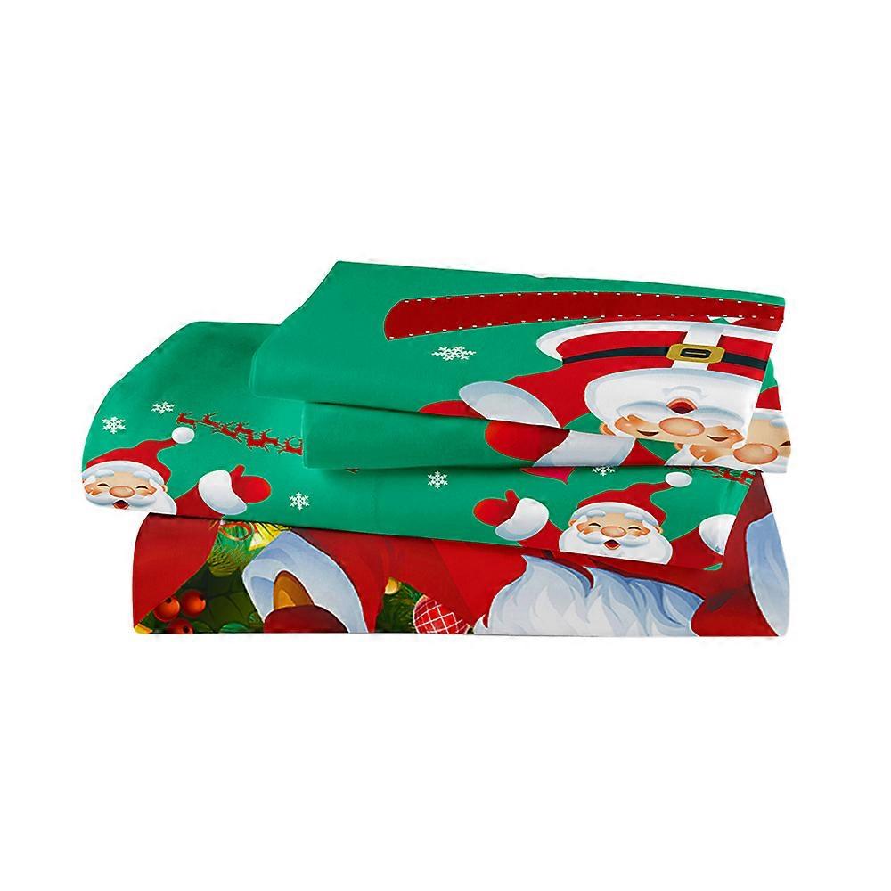 Christmas Santa Bedding Set Polyester 3D Printed Duvet Cover + 2pcs Pillowcases + Bed Sheet Set Christmas Bedroom Decorations--Queen Size
