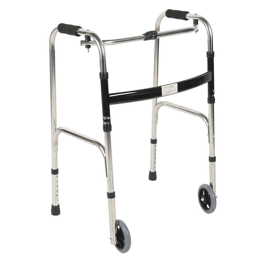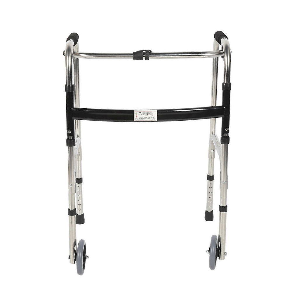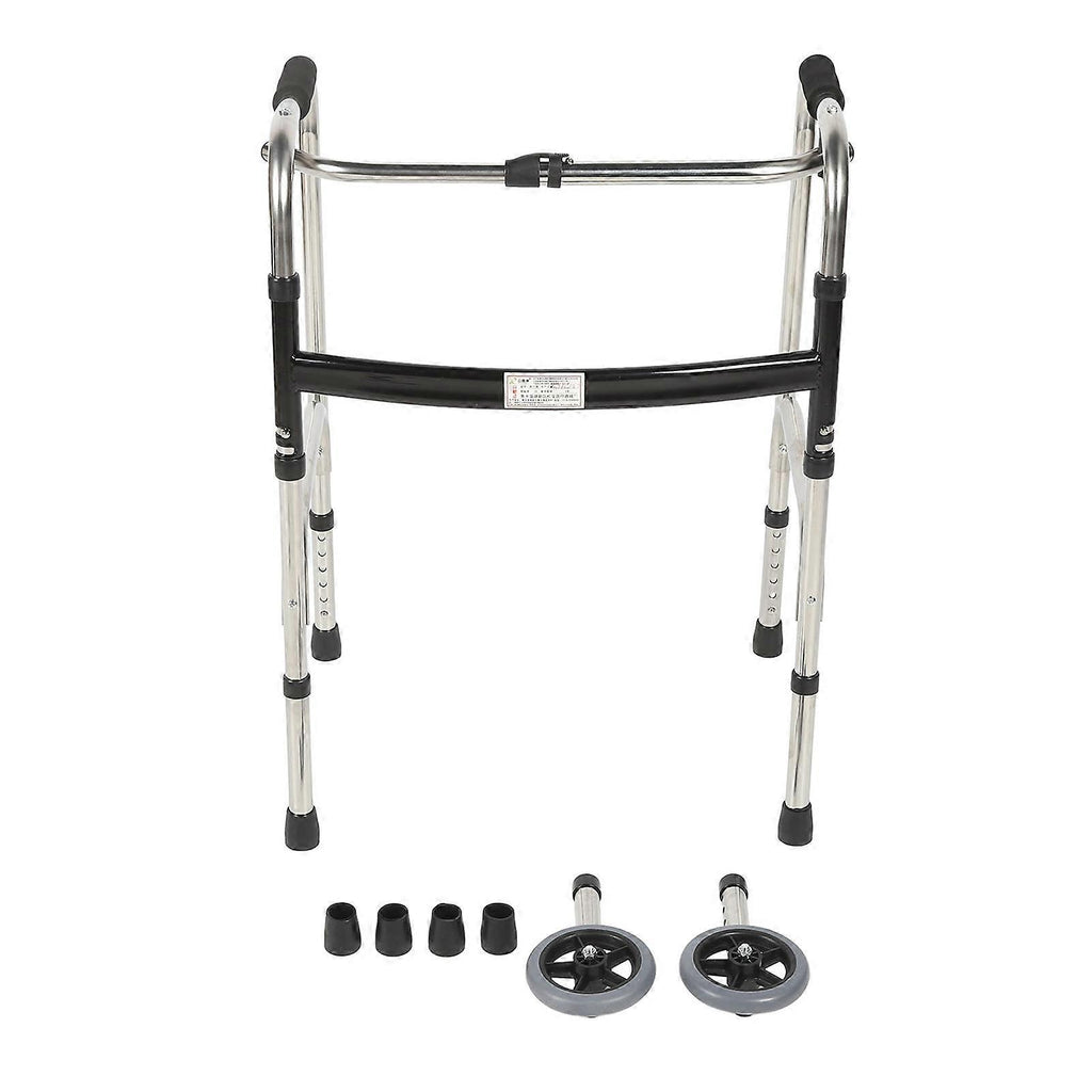 Elderly Folding Walker 6 Height Adjust Stainless Steel Senior Walking Aid with Wheels