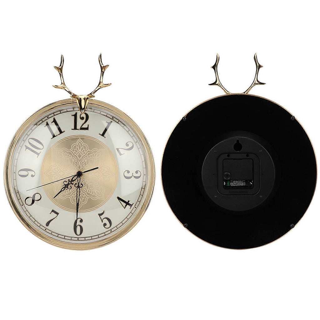Features 1??European style metal dial with hollow metal pointer is durable, simple and fashionable. 2??Suitable for bar, living room, bedroom, dining room, office, coffee shop, hall etc. 3??The spherical and clear organic anti-fog glass is transparent and beautiful, showing the clock dial clearly and easy to clean. 4??The copper frame is not easy to rust, fade or oxidize, the quality is good with high-end elegance. 5??The shape of the solid deer head stands for fortune and also symbolizes honorable identity. Specifications Condition: Item Type: Wall Clock Style: European Style Shape: Round Display Type: Pointer Movement Type: Quartz Housing Material: Copper Mirror Material: Ordinary Glass Mirror Dial Material: Metal Battery: 1 x AA Battery (Battery Not Included) Height: Approx. 38cm / 15.0in Diameter: Approx. 30cm / 11.8in Weight: Approx. 2050g / 72.3oz Package List 1 x Wall Clock (Battery Not Included)