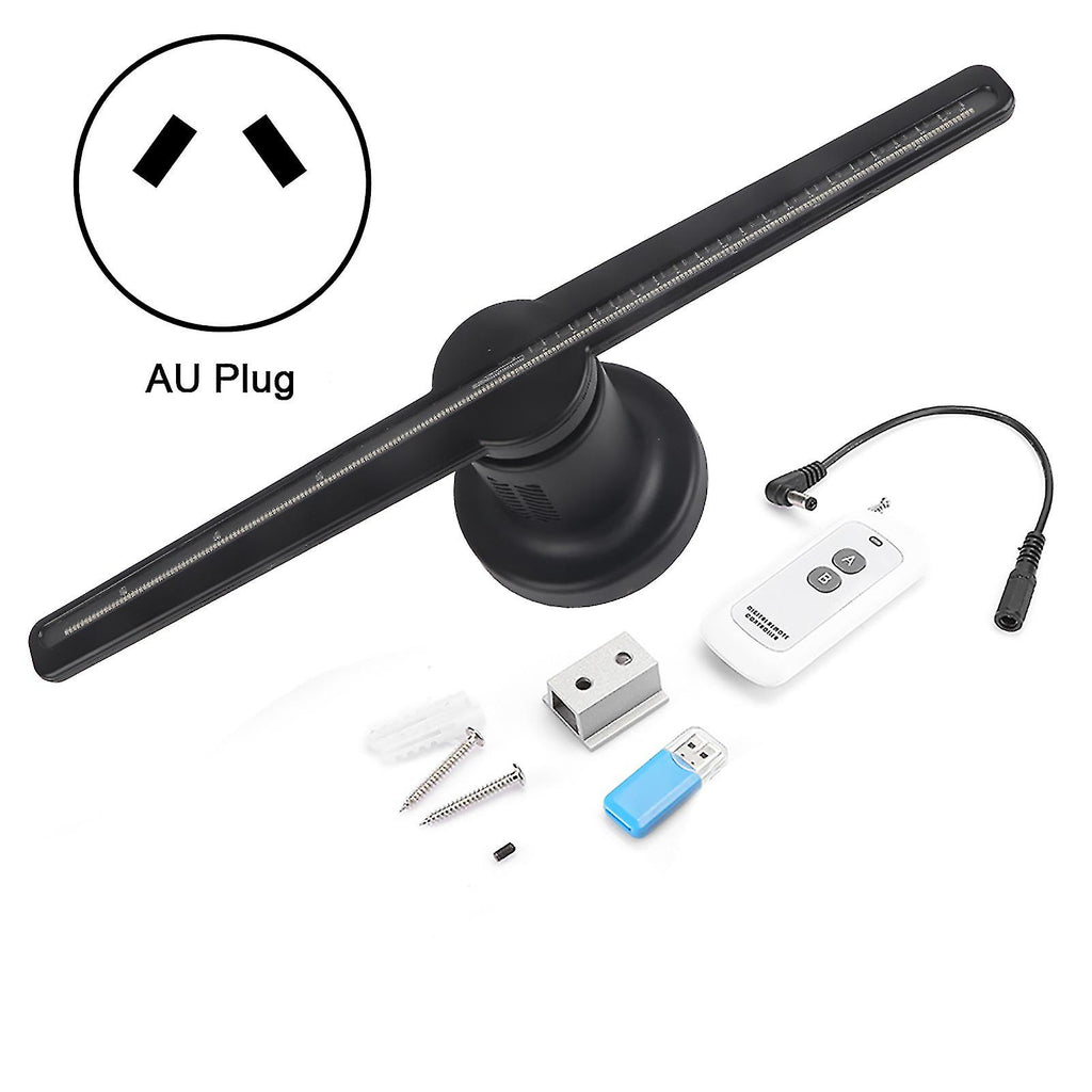 Features 1??1.5 times the thickness of the fan blades, more sturdy, not easy to damage, and longer service life. 2??The LED lights are colorful and exquisite, with holographic imaging to show the difference. 3??High nuclear motor, rapid operation makes the viewer's eyes produce visual residue, and see the product's holographic projection. 4??Adopt ABS and PC material is adopted, which is firm and not easy to corrode. PC material can transmit light better and make imaging clear 5??Support wall-mounted installation and array-type multiple online installation, with built-in hanger and expansion screw, installation is very simple. Specification Condition: Item Type: Holographic Projection Fan Advertising Machine Material: ABS+PC Color: black Weight: Approx. 845g Display size: Approx. 42 x 42cm/16.5x16.5in Resolution: 450 x 224 Rated power: 10W-15W Machine life: continuous operation> 50000H Transfer files and supported formats: jpg, mp4, avi, etc. Multi-screen playback: multiple devices can be connected to form a large-screen playback Usage: wall-mounted, floor-mounted, portable Application scenarios: airports, movie theaters, shopping malls, etc. Package List 1 x Holographic Projection Fan Advertising Machine 1 x Instruction 1 x Remote control(battery model 23A, not included battery) 1 x Card reader 1 x Screw installation bag 1 x Power supply 1 x Power supply patch cord