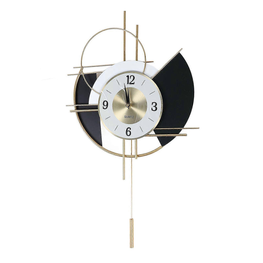 Features 1??Swinging Clock: The unique swinging design not only displays time, but also serves as a decorative art piece, enhancing the artistic sense and ambiance of the room. Clock is suitable for the living room, entrance, bedroom, and office. 2??Large Silent Clock: The clock is large sized, ensuring clear time display even in spacious areas. Its silent operation mechanism guarantees normal rest without disturbance while using its functions. 3??Nordic Modern Style: Crafted with simple lines and stylish design, clock creates a Nordic style for you. The metal material design exudes a sense of modernity, showcasing the owner's taste and elevating the interior decoration level. 4??Stainless Steel Material: The comfortable metal material and exquisite workmanship make the clock not only aesthetically pleasing but also durability. The clock has strong abrasion resistance, allowing for long term use. 5??Wide Application: This clock is suitable for various places such as the living room, bedroom, and office, making it a unique and exquisite gift to friends and family. Whether as a wedding gift, new home gift, or birthday gift, it is a perfect choice. Specifications Item Type: Nordic Iron Swing Wall Clock Material: Stainless Steel, Alloy Requires 2pcs AA batteries (not included) Height: Approx. 64cm / 25.2in Thickness: Approx. 6cm / 2.4in Length: Approx. 44cm / 17.3in Surface Diameter: Approx. 21cm / 8.3in Weight: Approx. 1650.00g / 58.2oz Package List 1 x Clock 1 x Pendulum