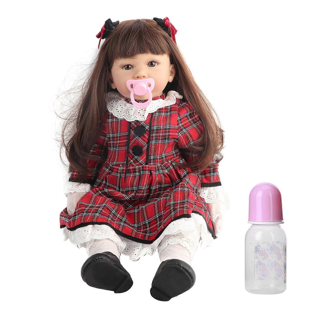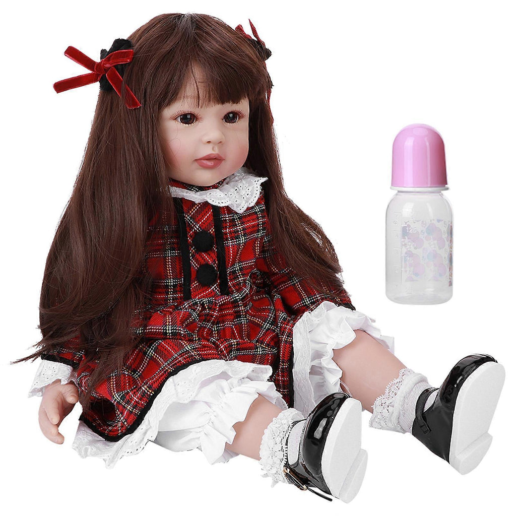 Features 1??The head and 3/4 limbs are made of high?quality silicone vinyl, which is very soft, lifelike and flexible. 2??The doll can be posed completely, and the head and limbs can move freely. 3??The body of the doll is filled with PP cotton cloth, the doll cannot take a bath or shower. You can take off the clothes to wash the clothes. For the doll body, you can also wash it by hand, as long as it is completely dry. 4??High-temperature fiber wig, which is pasted, easy to take care of. 5??A meaningful and perfect toy for your children, soothe them when they feel lonely. Specification Condition: Item Type: Baby Doll Structure: The head and limbs are made of imported silica gel, which is not particularly soft, moderate hardness. The body is made of cotton, which is very soft; the doll can move with its limbs, can sit or lie down; cannot stand or talk; cloth-body dolls cannot enter water. Eyes: Acrylic eyes; eyes can not blink. Hair: High-temperature fiber wigs are pasted, soft and easy to care for. Size: Approx. 60cm / 23.6in Package List 1 x Doll 2 x Hair Pin 1 x Pacifier 1 x Milk Bottle