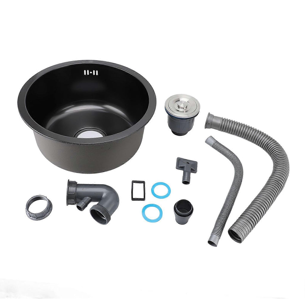 Features 1??NANO BLACK STAINLESS STEEL MATERIAL: Single bowl kitchen sink is made of premium nano black stainless steel, slick surface, easy to clean, erosion resistance, not easy to rust after long time use, keep kitchen sink clean and sanitary. 2??SINGLE SINK DESIGN: Undermount small kitchen sink adopts single sink design, which is convenient for washing large utensils or ingredients in a single operation, easy to operate and improve work efficiency, suitable for frequent kitchen operation scenes. 3??MULTIFUNCTIONAL USE: Small kitchen sink can be used for washing dishes and kitchen utensils in addition to washing vegetables, which is multifunctional and convenient for you to complete all kitchen cleaning work. 4??APPLICABLE SCENARIOS: Undermount small kitchen sink is suitable for kitchen, bar and other places, not only the practical function is powerful, but also has a stylish and beautiful appearance design, adding a sense of modernity and quality to the kitchen space. 5??UNDERMOUNT DESIGN: The single bowl kitchen sink's undermount design creates a seamless transition from the sink to the countertop, making it easy to wipe water and debris directly into the sink. Specifications Item Type: Undermount Small Kitchen Sink Material: Stainless Steel, Plastic Weight: Approx. 2955g/104.2oz Outer Diameter: Approx. 40cm/15.7in Inner Diameter: Approx. 35.5cm/14.0in Height: Approx. 18cm/7.1in Whether Overflow Prevention: Yes Underwater Connector: Direct Fit Installation Package List 1 Set x Undermount Small Kitchen Sink (11 Pieces)