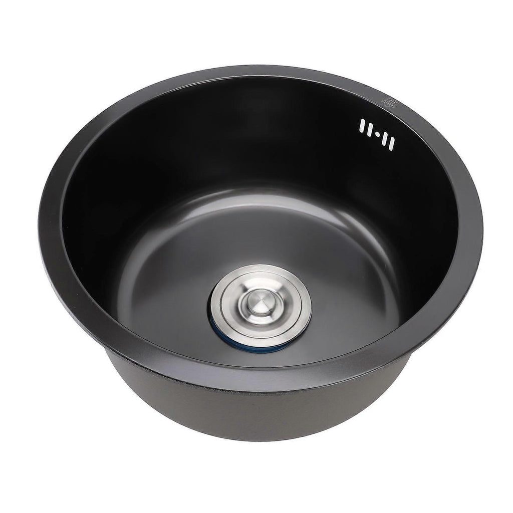 Undermount Small Kitchen Sink Professional Nano Black Stainless Steel Single Bowl Kitchen Bar Sink for Kitchen Bar Diameter 15.7in