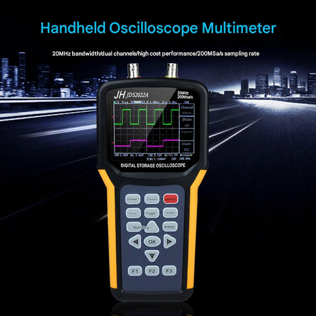 Enhance your electronics testing and troubleshooting capabilities with the JinHan JDS2022A 2CH Handheld Digital Oscilloscope, a compact and powerful tool designed for professionals and hobbyists alike. With a 20MHz bandwidth and a 200MSa/s sample rate, this oscilloscope delivers precise and reliable measurements, making it an essential addition to your toolkit.