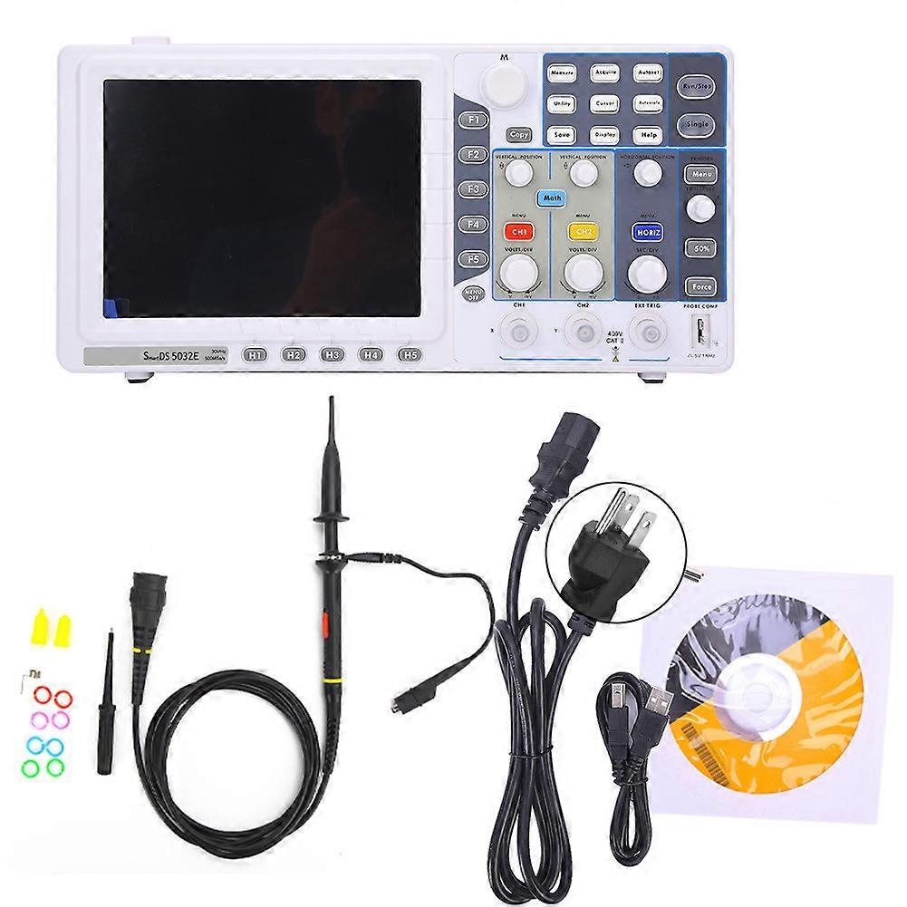 Feature:1. The real time sampling rate is up to 1GS/s and the bandwidth is up to 70MHz.2. This oscilloscope is powerful in function, practical to use and has long service life.3. With 8-inch (800x600 pixels) high resolution display, 100K storage depth, convenient to use.4. Support for pass/fail function and support for custom measurement menus to make work easier.5. Support for SCPI, occupying less operating space, easy to operate, easy to use, portable and easy to carry.Specification:Condition: Item Type: OscilloscopeMaterial: ABSModelSDS7072EBandwidth70MHzReal-time Sampling Rate1GS/sRise Time (Typical on BNC)5nsStorage Depth100KChannel2 Channels + External TriggerDisplay8-inch TFT (true color) LCD screen, 65535 colors, 800 600 pixelsTime Interval (T) Measurement AccuracySingle Time: (1 sample interval + 100ppm x reading + 0.6ns), > 16 average: (1 sample interval + 100ppm x reading + 0.4ns)Input CouplingDC, AC, GroundInput Resistance1M 2%, in parallel with 15pF 5pFTime Base Range2ns/div~100s/div, step by step in 1~2~4Vertical Sensitivity2mV/div~10V/div (at the input BNC)Vertical Resolution8bit resolution (simultaneous sampling of two channels)Maximum Input Voltage400V (DC+AC peak, 1M input impedance) (10:1 probe attenuation)Trigger TypeEdge trigger, video trigger, pulse width trigger, slope trigger, alternate triggerProbe Attenuation Coefficient1X, 10X, 100X, 1000XIsolation Between Channels50Hz: 100:1, 10MHz: 40:1Waveform InterpolationSin(x)/xSingle BandwidthFull BandwidthLow Frequency Response (AC Coupling, -3Db)10Hz (on the BNC)DC Gain Accuracy3%Trigger CouplingDC coupling, AC coupling, LF suppression, HF suppressionTrigger Level RangeInternal6 grids from the center of the screenEXT600mVEXT/53VTrigger Level Accuracy (Typical) for Signals with Rise and Fall Times 20nsInternal0.3 gridsEXT(40mV+6% set value)EXT/5(200mV+6% set value)Trigger Sensitivity (Video Trigger, Typical)Internal2 grids peak-to-peak valueEXT400mVEXT/52VTrigger ModeAutomatic, Normal, SingleSignal System and Line/Field FrequencySupport for NTSC, PAL and SECAM broadcast systems any field or line frequency(Video Trigger Type)Automatic MeasurementPeak-to-peak, mean, rms, frequency, period, maximum, minimum, top value, bottom value, amplitude, overshoot, preshoot, rise time, fall time, positive pulse, negative pulse width, positive duty cycle, negative duty cycle, delay AB, delay ABMathematical OperationAdd, subtract, multiply, divide, FFTStorage Waveform15 sets of waveformsLissajous GraphicsBandwidthFull BandwidthPhase Difference3 degreesCursor MeasurementVoltage difference between cursors (V), time difference between cursors (T)Standard InterfaceUSB HOST (USB storage), USB DEVICE, LAN, AUX (trigger output / PassFail)Power Supply110-240VAC RMS, CATIIProduct Size (Length x Height x Width)Approx. 348 x 170 x 78 mm / 13.7 x 6.7 x 3.1 in.Package List:1 x Oscilloscope1 x English User Manual1 x CD2 x Probe2 x Probe Adjustment Set1 x Power Line1 x USB Cable