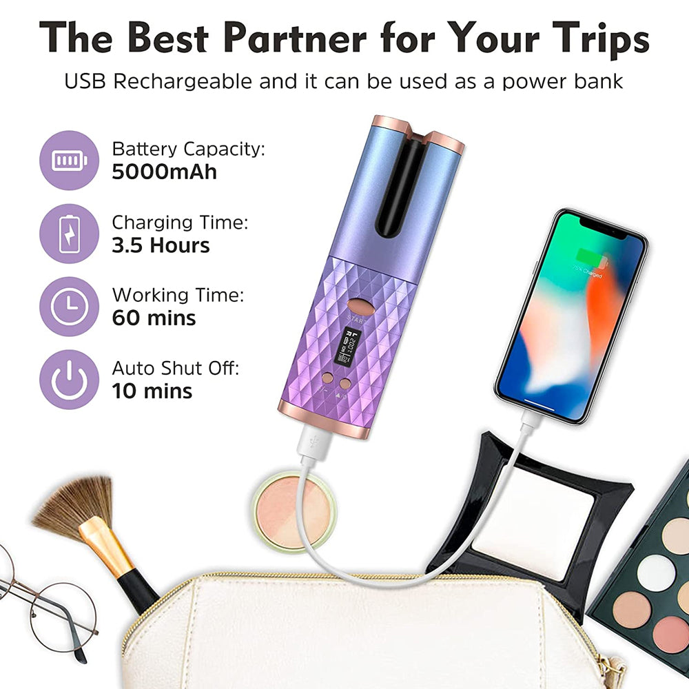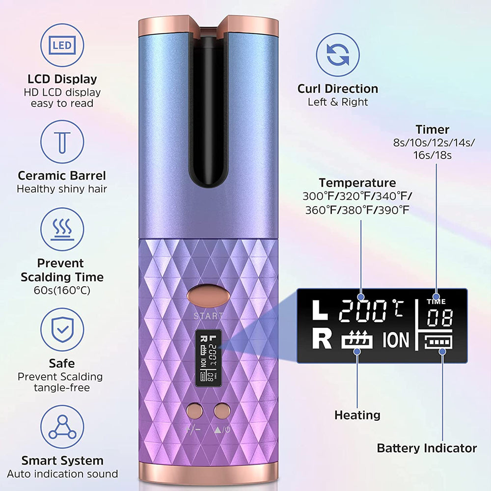 ❤【Automatic Curling】 This latest cordless curling iron creates glamorous curls easily at the touch of a button! Automatic rotating barrel creates curls effortlessly in seconds. No Skill Required!