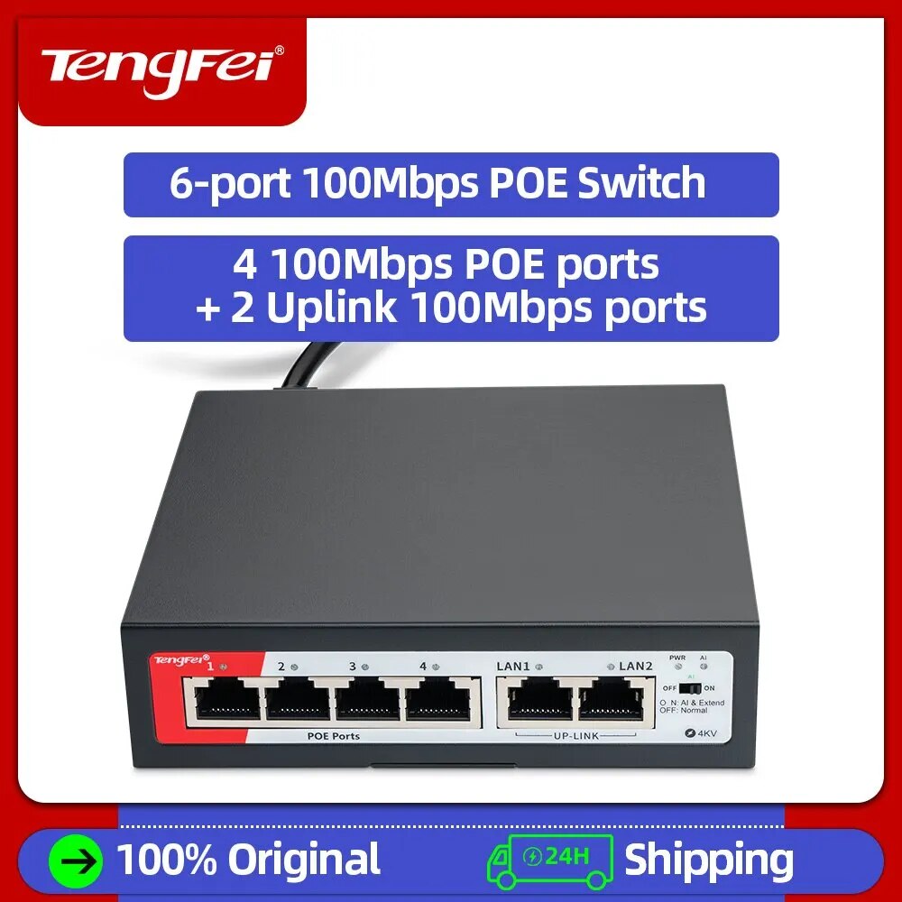 TengFei POE Switch 6Port 100Mbps Switch 4 PoE+2 UpLink With Internal Power Office Home Network Hub for IP Camera with Phone