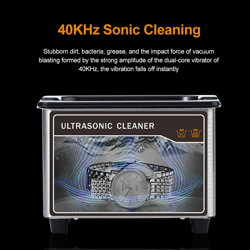 0.8L Capacity: This ultrasonics cleaning machine has 0.8L capacity, it can effectively hold the items that need to be cleaned.