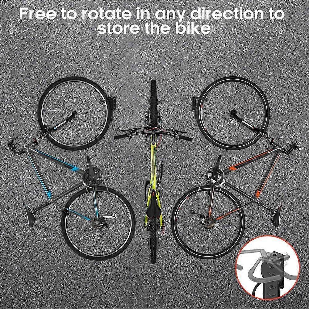 Swivel bike rack: The bike wall mount racks feature a space-saving swivel design that allows you to lay your bike flat against the wall, saving valuable floor space. The rear plate of the bike rack can be swiveled left and right. Heavy-duty bike storage racks: Made of thick steel, this swivel bike wall mount is built to be sturdy and . It can securely hold mountain, road, hybrid, and . The bike hanger wall mount vertical adopts a wall-mounted design, to maximize space efficiency. Whether in a garage, home, or shed, it allows you to hang your bicycles neatly , maintaining a clean and organized indoor space. It's great for multiple bikes around and keeps the garage looking very tidy. The flexible bike rack design meets your needs for storing various sizes and types of bicycles. And the bike hooks of the bike storage rack are wrapped in soft rubber to protect the tires from scratches. Colour:Black Material:Steel Package Contents: 2x Swivel Bike Rack Only the above package content, other products are not included. Note: Light reflection and different displays may cause the color of the item in the picture a little different from the real thing. The measurement allowed error is +/- 1-3cm.