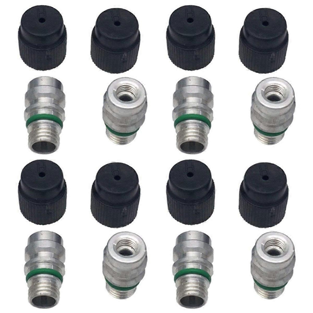 BAS03011 (20 Pack) - M12x1.5 Male Thread High Side A/C Port "Poppet" Style High Flow Service Valve ball valve is already installed in ports like style (Not Serviceable Separately) Aftermarket Replacement Part fits MT0105, 800-955, 59946 5003463AA, Delco 15-5438, F3AZ-19E762-A, 52458184, / 357-820-795J and More Commonly used Aftermarket High Side A/C Valve Charge Port fitting for many American and European Vehicles, please verify that they fit your vehicle.We recommend professional installation, working on A/C systems without the and training can severely damage your HVAC system. colour: Silver,Black Material: Plastic, aluminum alloy Package Contents: 20 * Charging port valve 20 * Valve cover. Only the above package content, other products are not included. Note: Light reflection and different displays may cause the color of the item in the picture a little different from the real thing. The measurement allowed error is +/- 1-3cm.