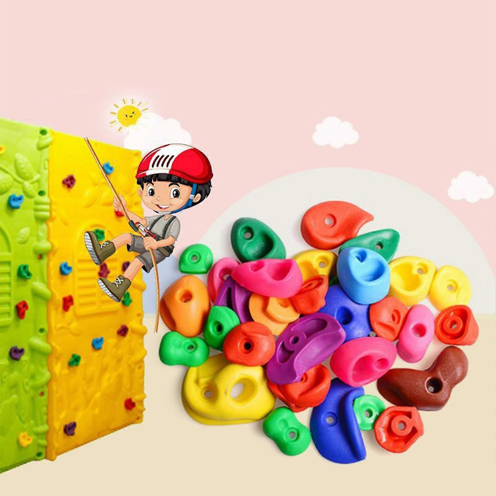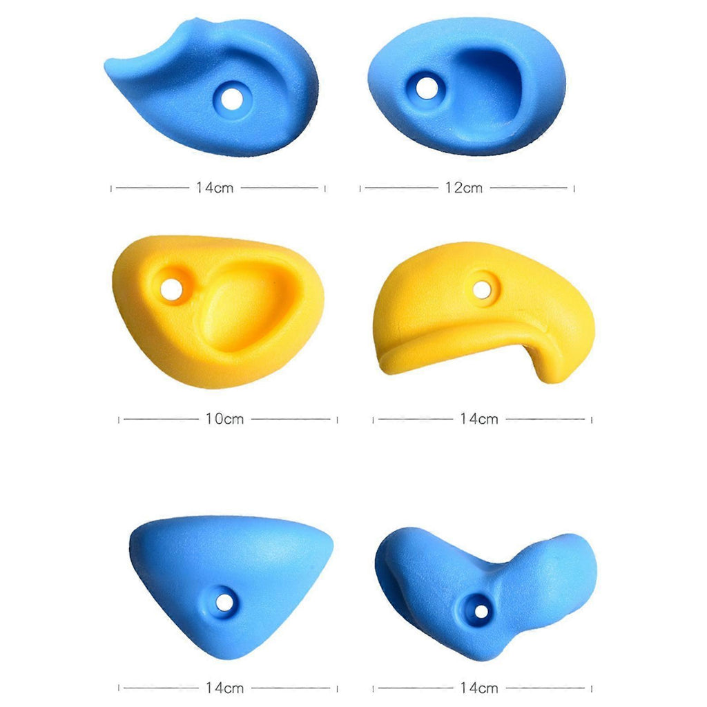 Description: Material: Rock Climbing Holds is made of pp, environmentally friendly, with a smooth surface without burrs, safe and reliable. Thoughtful grinding process ensures that they are not easy to slip.Outdoor climbing set: kids Toys is a sensory integration training equipment and climbing toy that promotes parent child interaction, is simple and fun, and enhances physical strength.Bright colors and various sizes: Rock Wall Climbing Kit has different sizes of 7-14 cm and bright colors, suitable for different venues and meet various needs.Attractive shapes: Climbing Rock Wall Grips has a variety of cute shapes that can attract children to play and help enhance their physical strength.Easy to install: Playground Accessories is easy to install and can build a climbing wall in children's rooms and outdoor playgrounds such as jungle gyms, tree houses, swings, etc. Size Chart: 7cm-14cm/2.76inch-5.51inch Package Includes: 20 Rock Climbing Holds (shape and color are random) with screws