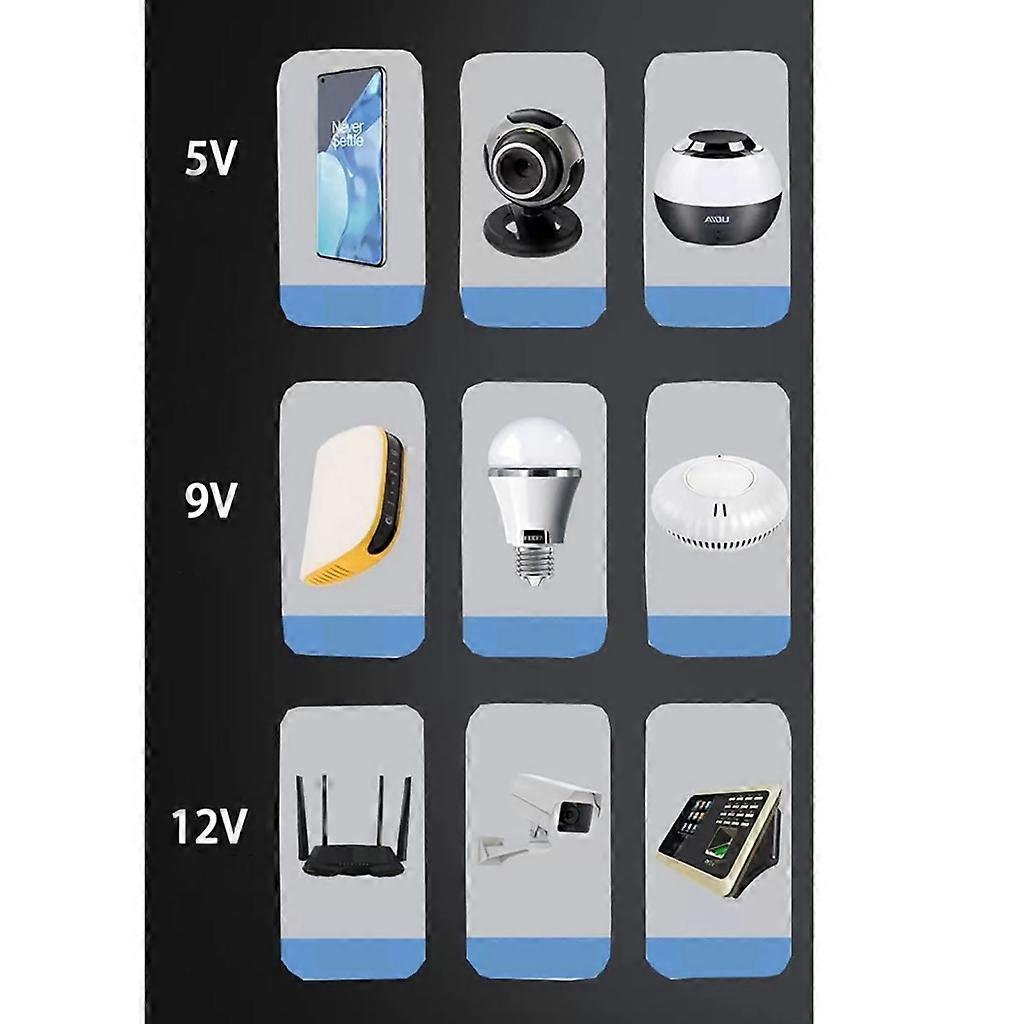 Features: Uninterruptible power supply is kind of backup energy storage power supply. 60W high power battery backup uninterruptible power supply system to safeguard- workstations, networking devices, and home entertainment equipment Easy to carry around and put it in your bag/car. It has perfect overcharge, overdischarge, overcurrent and short circuit . Suitable for Security Camera Wifi Router Speaker LED lights, video cameras, portable DVDs,etc-. Specifications: Item: Mini UPS Uninterruptible Power Supply Capacity: 17600mAh / 20800mAh Input Voltage: AC100-240V 50/60Hz 12-24V 3A Output Power: 60W Output Voltage: 5VDC+2USB 5V 2A ; 9V/12V 2A Output : 4x12V 5A Output:Standard 2x24V(1.2A)/48V 0.6A(Gigabit) Plug: US / EU / UK / AU Color: Black Material:ABS Size:approx 214x150x85MM/8.43x5.9x3.35in Suitable for Security Camera Wifi Router Speaker LED lights etc Note: Please allow 0-1cm error due to manual measurement. pls make sure you do not mind before you bid. Due to the difference between different monitors, the picture may not reflect the actual color of the item. Thank you! Package includes: 1 Set x Battery Backup Kit