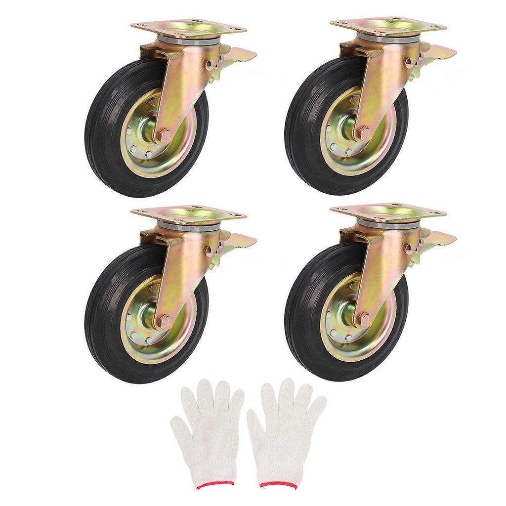 4Pcs 8in Caster Wheel with Brake 1 Pair Gloves Universal Workbench Cart Caster for Furniture Trash Can