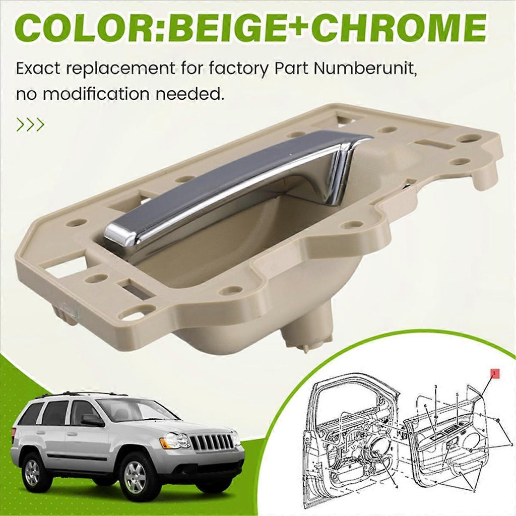 Part Number comparable design to the structural fitment and strength. Exact replacement for factory Part Numberunit, no modification needed. Name:inner door handles Placement on Vehicle: Front Rear Door: Left Right Condition: New Part Number: Front Left 1JV471J3AA Front Right 1JV461J3AA Rear Left 5HR411J3AK Rear Right 5HR421J3AK Fitment:For Grand 2005-2011 Colour:Beige+chrome Material:plastic: Package Contents: 4pcs inner door handles Only the above package content, other products are not included. Note: Light reflection and different displays may cause the color of the item in the picture a little different from the real thing. The measurement allowed error is +/- 1-3cm.