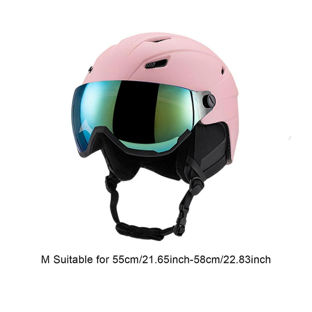 Description: Integrated Design: Pink Snowboarding Helmet is integrated designed with protection goggles, windproof, enhances vision and protects eyes from adverse weather conditions during ski adventures Ski Accessories: High Impact Protectived ski helmet, shock absorption, minimize impact force and improve overall safe Reliable Material: Snowboard Helmet features with eps liner, high impact pc shell, designed with breathable hole and comfortable removable inner liner Adjustable Strap: Designed with adjustable strap and jaw pad to ensure a safe and comfortable fit, suitable for both men and women Wide Use: Snowboard Helmet is great for outdoor winter sports, such as skiing, snowboarding, skateboarding, skating, snowmobiling, snowboarding, mountaineering and more Specification: Material: EPS and PC Size Chart: Head Circumference (Optional) :S: 51cm-54cm/20.08inch-21.26inchorM: 55cm-58cm/21.65inch-22.83inchorL: 59cm-61cm/23.23inch-24.02inchorXL: 61cm-63cm/24.02inch-24.8inch Package Includes: 1Skiing Helmet