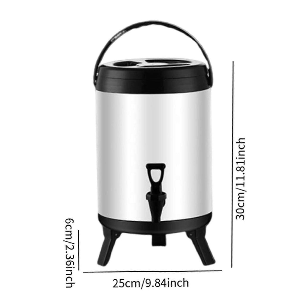 Description: Insulation: Low thermal conductivity, the effect of heat preservation and cold preservation is very be used to hold all kinds of delicious milk tea, coffee, juice, etc. Notes: Only Physical Insulation, NO HeatingStainless Liner: The Beverage Dispenser liner is made of food grade stainless steel precision material. It is double insulated and can keep warm for 8-24 hoursConstruction: The Insulated Barrel 2.5cm thick insulation layer is complemented by a stainless steel rolled edge design on both the inner and outer surfaces of the containerResin Faucet: The two stage faucet is made of food grade resin. It can withstand high temperature and long time pull and release, not easy to breakInnovative Lid: Bucket cover with anti skid design, more heat preservation, can be rotated and tightened to prevent water overflow. Great for Home Party Use Size Chart: diameter 25cm/9.84inch, inner diameter 19.5cm/7.68inch, height 30cm/11.81inch, inner height 20cm/7.87inch, capacity 5.5kg Package Includes: 1 Insulated Barrel