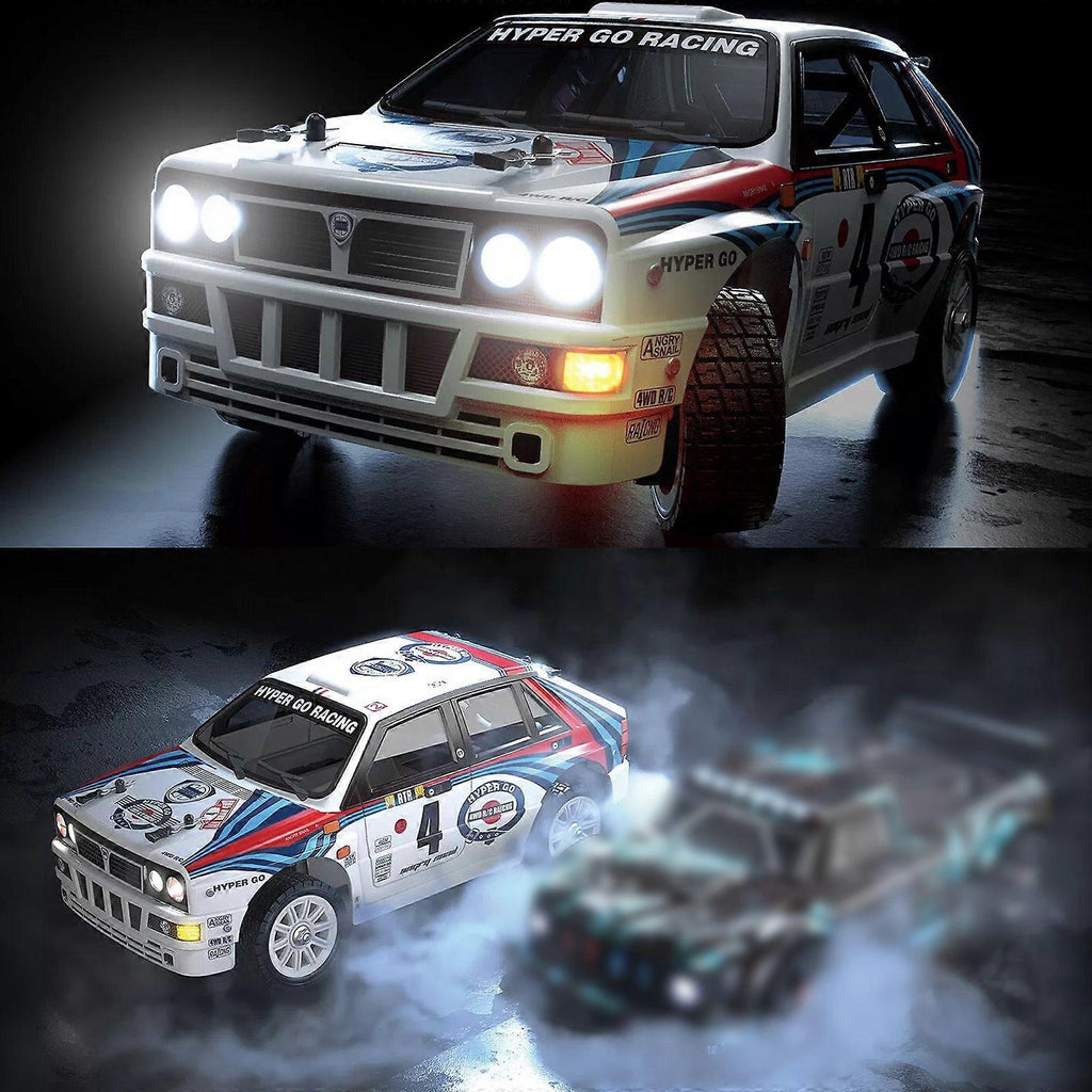 MJX Hyper Go 14302 (NEW 2024 VERSION) Brushless LiPo Rally / Drift Car - With 2S or 3S Battery The delivery service used Royal Mail Tracked 24 Hour Service - please ensure you are available on the day of delivery to sign for the parcel. Updated for 2024 with a fully licensed Lancia body shell, the MJX 14302 looks amazing. Praised by countless RC enthusiasts on YouTube (check for yourself!), these models offer exceptional reliability and exhilarating high-speed performance all packed into a highly portable 1/16th size model. Each vehicle features top quality components using 2.4ghz radio equipment and powerful LiPo batteries. Each model comes with three sets of wheels - one set pre-installed on the car for on-road use, another set designed for drifting and another set for rally terrain. Please note, unlike many listings on eBay we only stock the official UK version of MJX models meaning the manual, battery charger ect are designed for UK use with CE certification. Serious-RC operate as an official stockist of the MJX Hyper Go series trucks and buggies with warranty, spare parts and hop-ups/upgrade parts all available directly from us. The MJX Hyper-Go 14302 car features fully serviceable and user-configurable parts including adjustable independent suspension, multiple shock absorber positions, adjustable camber, adjustable toe angle, adjustable chassis clearance. Most parts can be upgraded including the chassis strengthened with red alloy parts. The drop down option provides the choice between 2S and 3S batteries types. The 2S is the standard battery delivering speeds of around 45kph. The 3S batteries are more powerful and allow the model to get to speeds of 67kph. Choose the 3S 2200mAh version for the highest speed and longest run time. Features: Fully built and ready to run - just add two AA batteries to the remote control Two sets of wheels included with rally style tyres and drift tyres Top speed of 65KPH using the 3S 11.1v battery or 45KPH using the 2S 7.4v battery LED lights for a realistic appearance 2845kv brushless motor with 45A Waterproof ESC 2.4GHz radio system with hi-torque steering servo 4WD drive system with metal front and rear differentials and metal drive shafts Oil filled aluminium capped shock absorbers Water resistant and dust-proof electronics High quality crack-resistant body shell included USB battery charger included for convenient charging Wheel wrench and screw driver included Official UK supplier of MJX models - all spares and upgrades available from us.