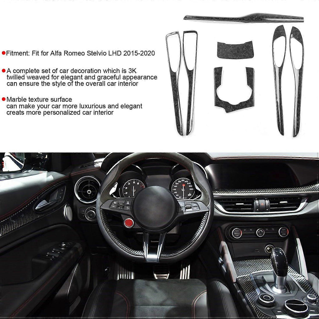 7Pcs Interior Trim Kit Carbon Fiber Cover for Door Dashboard Central Control Panel Fit for Alfa Rome