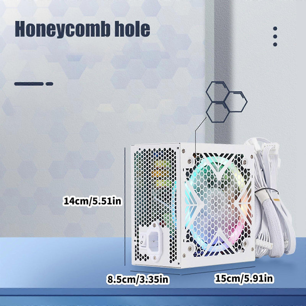 Features: The computer power supply features 80 Plus Bronze certification, ensuring high energy efficiency and reliabled for your PC build. Equipped with 12CM Hydraulics bearing fan, this power supply enhances airflows while maintaining low noise, thanks to its ventilation designing. For gamers, designers, and users requiring high performances PC, it supports multitasking demands with ease. Perfectly for home, office, or gaming room, this power supply provides dependable power delivery and color lighting effects enhances your setups. With durability metal construction, ensures long service and stability, making it a component in your computer Specifications: Size??about 14x15x8.50cm/5.51x5.91x3.35in Component: Metal Power??650W/750W/800W/850W Optional Output voltages ranging: 12V Input voltages ranging: 220v With 12CM/4.72in Color Light Hydraulics bearing fan Mainboard Power Supply?? 24Pin(20+4Pin?? CPU Power Supply??8Pin 4+4pin PCIE power Supply: 8Pin 6+2pin Package Includes: 1PC Power Supply note: Stock voltages are 220V, 110V need to be customised. There might be a bit color distortions due to different computer resolution There might be size errors due to different computer resolution