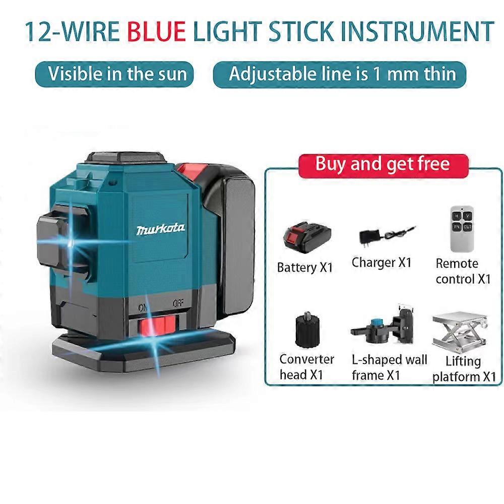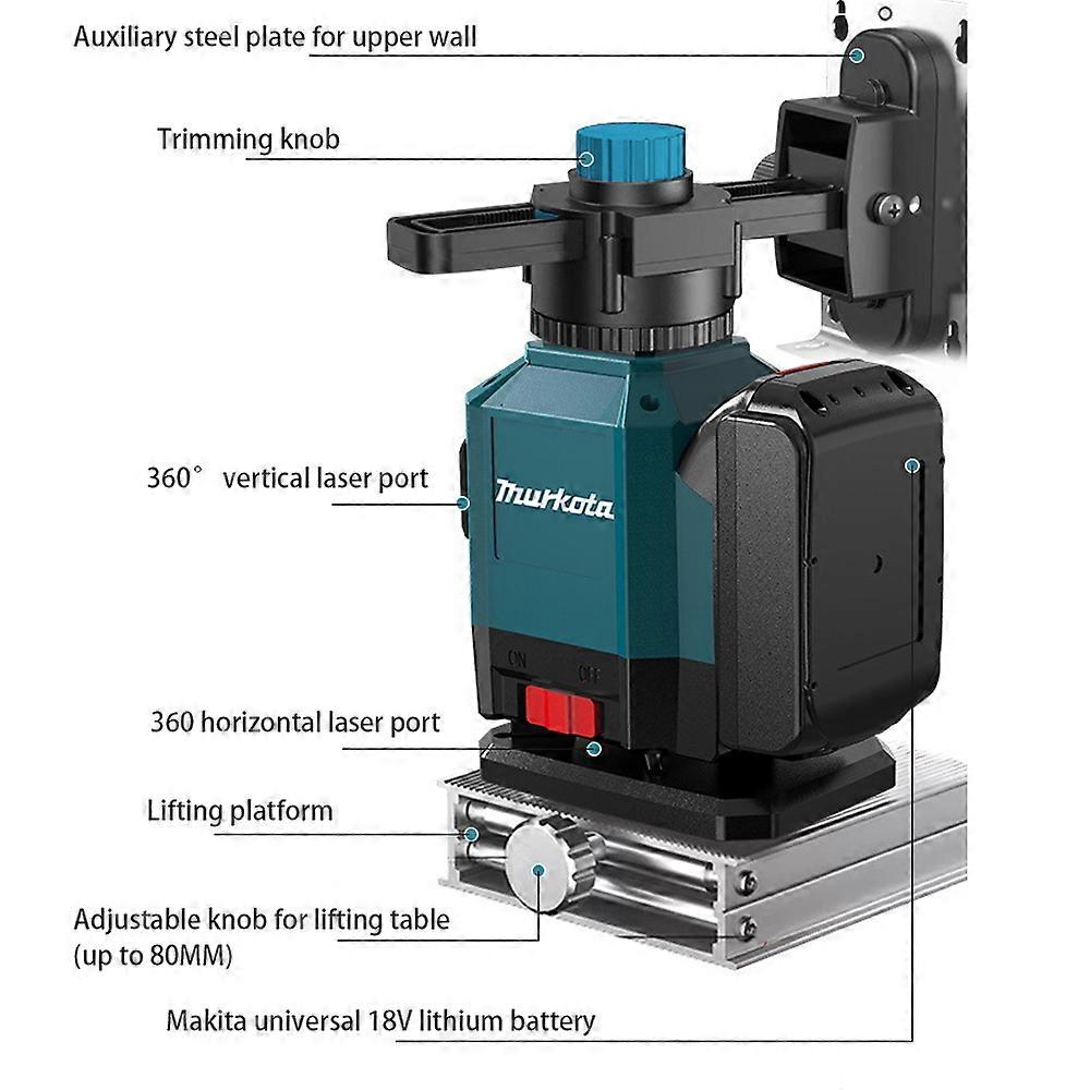 Versatile Green Laser Level with high precision 12/16 lines for professional alignment tasks. Compatible with Makita 18-21V power tools, featuring automatic leveling, waterproof design, and remote control.