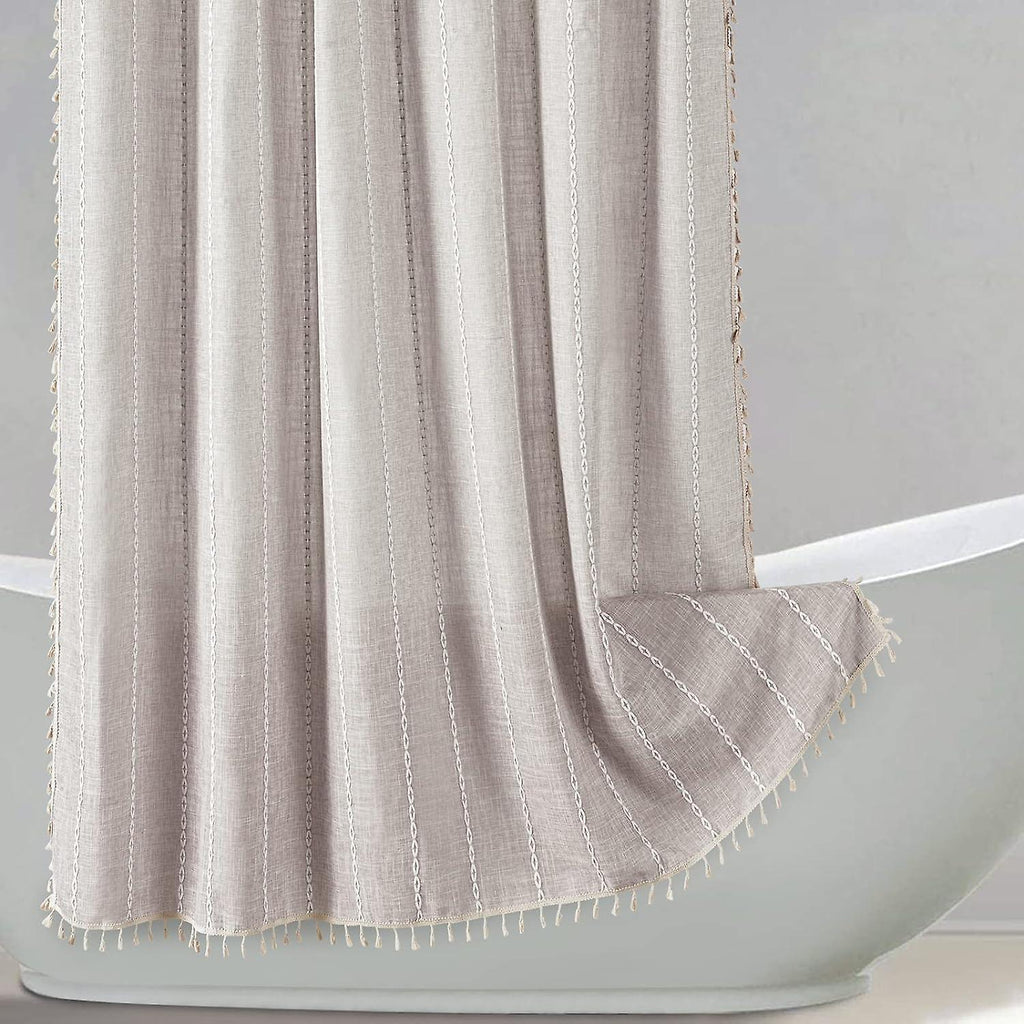 Unique stitching design: Bohemian farmhouse style shower curtain brings a beautiful look to your bathroom, creates a relaxed feeling in the room and refreshes your bathroom; Enough to become a bohemian farmhouse bathroom decoration, to meet entertainment and shower needs High quality thick material: This rustic linen shower curtain is made of durable polyester fabric. 230GSM (grams per square meter), weight about 1.1 pounds more than a normal 90GSM fabric shower curtain. Soft and comfortable to touch, smooth, non-wrinkling, non-drying and able to resist bathroom moisture. High quality, long service life Waterproof and quick-drying: A new waterproof coating that ensures that the unique shower curtains in your country stay fresh and clean. The upper reinforcement, anti-rust metal eyelets and anti-fading fabric are both practical and fashionable Product Attribute Specification: Weight:1180g Package contents: 1 set of linen cotton shower curtains Quantity:1 piece < b>Color: Material:Linen Cotton Product size:180L x 180W cm Opacity:Semi-transparent