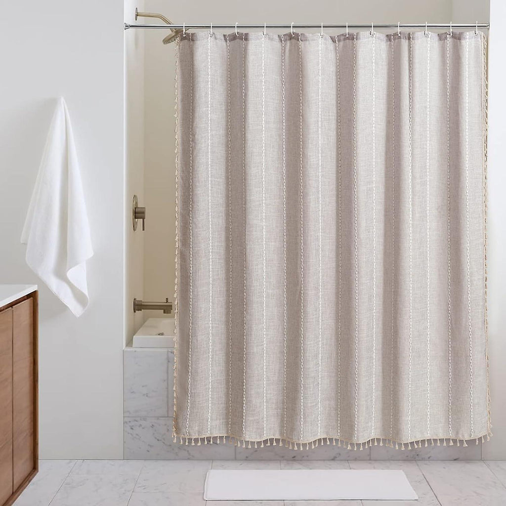 (Beige) Country House Bathroom Decoration Stripes Minimalist Bohemian Unique Texture Linen, 180 X 180 Cm Gray Green