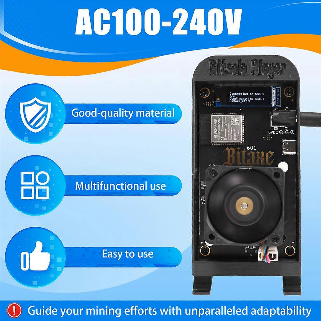 The Bitaxe 601 Gamma is the most powerful open-source single ASIC chip on the market! The Bitaxe Gamma represents a leap forward in desktop Bitcoin mining technology and supercedes its predecessors. It is part of the Bitaxe series, which includes the Bitaxe Max, Bitaxe Ultra, Bitaxe Hex, The Bitaxe Gamma is powered by the BM1370 ASIC chip, which is the same chip used in the Bitmain Antminer S21pro. This chip is known for its exceptional efficiency, with a power consumption of just 15W/th. This makes the Bitaxe Gamma one of the most powerful and energy-efficient miners on the market, allowing miners to potentially maximize their profits while minimizing their environmental impact. Setting up the Bitaxe Gamma is a breeze. Simply attach the screen, plug in the power cable, change a few settings, and you're ready to go. The miner comes with a built-in WiFi module, powered by the ESP32-S3-WROOM-1 WiFi microcontroller. This allows you to connect to your miner wirelessly, making it easy to manage and monitor your mining operation from anywhere in the world. The Bitaxe Gamma operates on a global voltage standard, so you can use it anywhere in the world without having to worry about voltage compatibility. The miner has a hash power of 1.2TH/s, which is impressive for its size and power consumption. This allows the Bitaxe Gamma to mine Bitcoin at an unprecedented rate, making it an ideal choice for both novice and experienced miners. Due to different batches, there may be differences in product appearance, color, and printed text, which not affect the use. The Bitaxe Gamma heatsink is made of High-quality materials, ensuring efficient heat dissipation, while the fan operates at a low noise level, making it perfect for home or office use. The miner also comes with a 0.91inch OLED I2C display module, which allows youto monitor your mining progress in real-time, including hash rate, temperature, and power consumption. The Bitaxe Gamma is designed to be open-source, which means that the community can contribute to its development and improvement. This is part of the open-source mining revolution, which to democratize mining and more accessible to everyone. The open-source nature of the Bitaxe Gamma allows for continuous and improvement, ensuring that it remains at the forefront of mining technology. Device must be at default settings to prevent low voltage input and overheating. The fan appearance and cable length from batch to batch, but not affect the use Voltage:AC100-240V Plug Type:BR Plug,it applies to Brazil and so on. Colour:Black Material:PCB+Plastic Package Contents: 1 x Miner(With housing bracket) 1 adapter Only the above package content, other products are not included. Note: Light reflection and different displays may cause the color of the item in the picture a little different from the real thing. The measurement allowed error is +/- 1-3cm.
