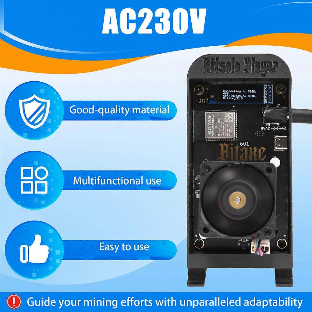 The Bitaxe 601 Gamma is the most powerful open-source single ASIC chip on the market! The Bitaxe Gamma represents a leap forward in desktop Bitcoin mining technology and supercedes its predecessors. It is part of the Bitaxe series, which includes the Bitaxe Max, Bitaxe Ultra, Bitaxe Hex, The Bitaxe Gamma is powered by the BM1370 ASIC chip, which is the same chip used in the Bitmain Antminer S21pro. This chip is known for its exceptional efficiency, with a power consumption of just 15W/th. This makes the Bitaxe Gamma one of the most powerful and energy-efficient miners on the market, allowing miners to potentially maximize their profits while minimizing their environmental impact. Setting up the Bitaxe Gamma is a breeze. Simply attach the screen, plug in the power cable, change a few settings, and you're ready to go. The miner comes with a built-in WiFi module, powered by the ESP32-S3-WROOM-1 WiFi microcontroller. This allows you to connect to your miner wirelessly, making it easy to manage and monitor your mining operation from anywhere in the world. The Bitaxe Gamma operates on a global voltage standard, so you can use it anywhere in the world without having to worry about voltage compatibility. The miner has a hash power of 1.2TH/s, which is impressive for its size and power consumption. This allows the Bitaxe Gamma to mine Bitcoin at an unprecedented rate, making it an ideal choice for both novice and experienced miners. Due to different batches, there may be differences in product appearance, color, and printed text, which not affect the use. The Bitaxe Gamma heatsink is made of High-quality materials, ensuring efficient heat dissipation, while the fan operates at a low noise level, making it perfect for home or office use. The miner also comes with a 0.91inch OLED I2C display module, which allows youto monitor your mining progress in real-time, including hash rate, temperature, and power consumption. The Bitaxe Gamma is designed to be open-source, which means that the community can contribute to its development and improvement. This is part of the open-source mining revolution, which to democratize mining and more accessible to everyone. The open-source nature of the Bitaxe Gamma allows for continuous and improvement, ensuring that it remains at the forefront of mining technology. Device must be at default settings to prevent low voltage input and overheating. The fan appearance and cable length from batch to batch, but not affect the use Voltage:AC230V Plug Type:UK plug,it applies to Malaysia, the United Kingdom and so on. Colour:Black Material:PCB+Plastic Package Contents: 1 x Miner(With housing bracket) 1 adapter Only the above package content, other products are not included. Note: Light reflection and different displays may cause the color of the item in the picture a little different from the real thing. The measurement allowed error is +/- 1-3cm.