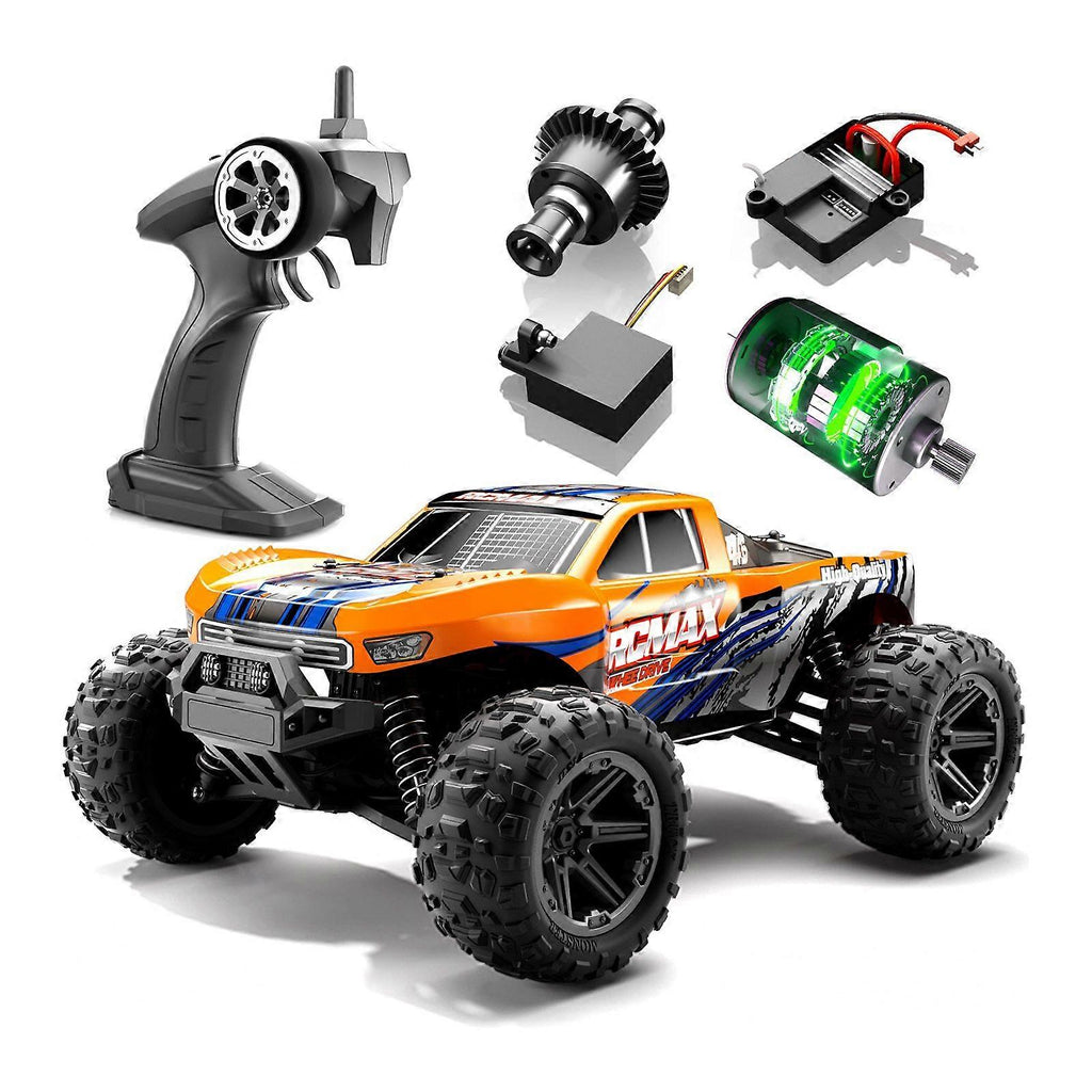 1/14 Scale Brushed 4WD RC Monster Truck - 38KM/H High Speed, Waterproof ESC, 120M Remote Control, LED Lights - Off-Road Crawler Vehicle Grey (Ready to Race) Extreme Performance 38KM/H Top Speed with RS390 High-Torque Motor & 2S Li-ion Battery 190mm Extended Wheelbase & 85mm All-Terrain Tires for Ultimate Stability Waterproof 30A ESC/Receiver Combo & Full Proportional Throttle Control Battle-Ready Durability POK/PA Chassis with Explosion-Proof PVC Body & Stainless Steel Ball Joints Reinforced Planetary Gear Differential & Twin Shock Absorber Suspension 14 Crash-Resistant Ball Heads & 4 Heavy-Duty Steering Ball Heads Pro-Level Control 2.4GHz Multi-Car Racing System with 120M+ Super Range Realistic Steering Feel with 5-Wire 17G Digital Servo & Syncro-Control 3 Driving Modes: Forward/Reverse Switchable + Steering Calibration All-Terrain Dominator Dual Wishbone Independent Suspension for Sand/Mud/Grass/Pavement Integrated LED Headlights & Anti-Glare Wheel Design 20min Continuous Runtime with Fast USB Balance Charger Complete Kit Includes Pre-Assembled RC Car 2.4GHz Pistol Grip Transmitter 7.4V 1500mAh Li-ion Battery USB Charger Screwdriver English Manual Product Specifications: Product name: 1/14 brushed four-wheel drive big-foot vehicle Color: gray/orange Product dimensions: 32.8*23.6*12.3 CM Remote control dimensions: 15.4*21.2*9 CM Package dimensions: 34.8*19*25.9 CM Vehicle weight: 917.5g Remote control weight: 157g Total package weight: 1811g Lighting: LED headlight Differential: Planetary gear differential (nylon) Materials: Metal, electronics, POK, PA Motor: RS390 high-torque strong magnet (magnetic ring + heat sink) ESC/Receiver: 30A 2S integrated waterproof system Battery: 7.4V 1500mAH 5C Li-ion (T plug) Servos: 5-wire 17G digital servos Remote batteries: 3AA (not included) Charger: USB balance charger Frequency: 2.4GHz (multi-car racing support) Control range: 120 meters Control system: Full-proportional synchronous (pistol grip) Runtime: 18-20 minutes (full speed) Charge time: 2.5 hours (USB balance charger) Wheelbase: 190mm Track width: 230mm Wheel diameter: 85mm Top speed: 38km/h