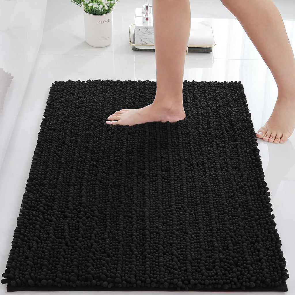 (black) Bathroom Rug Extra Soft Thickened Absorbent Plush Bathroom Rug Machine Washable Non-slip Plush Bathroom Mat Dry Plush Bathroom Rug For Bathroom Shower