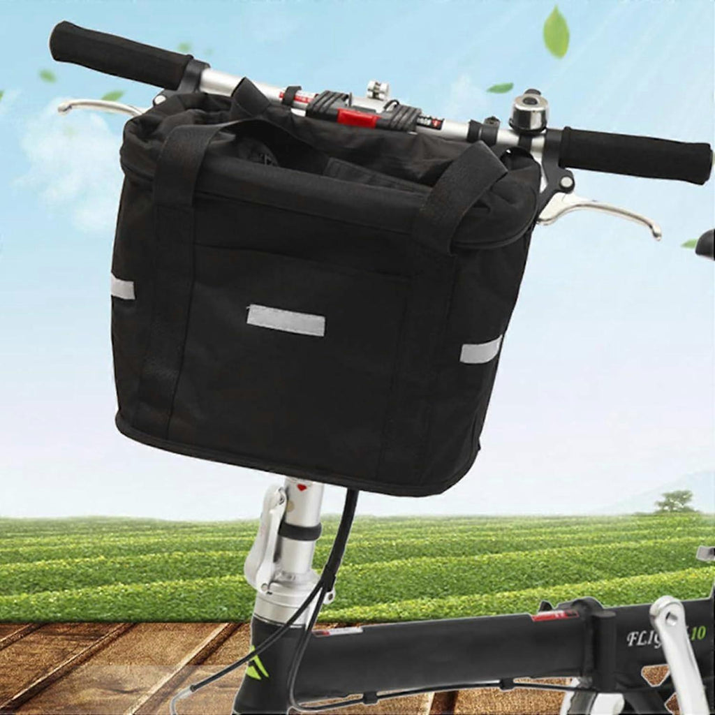 Black Bicycle Basket, Foldable Front Basket with Handlebar Adapter, for Small Dogs, Shopping, Travel