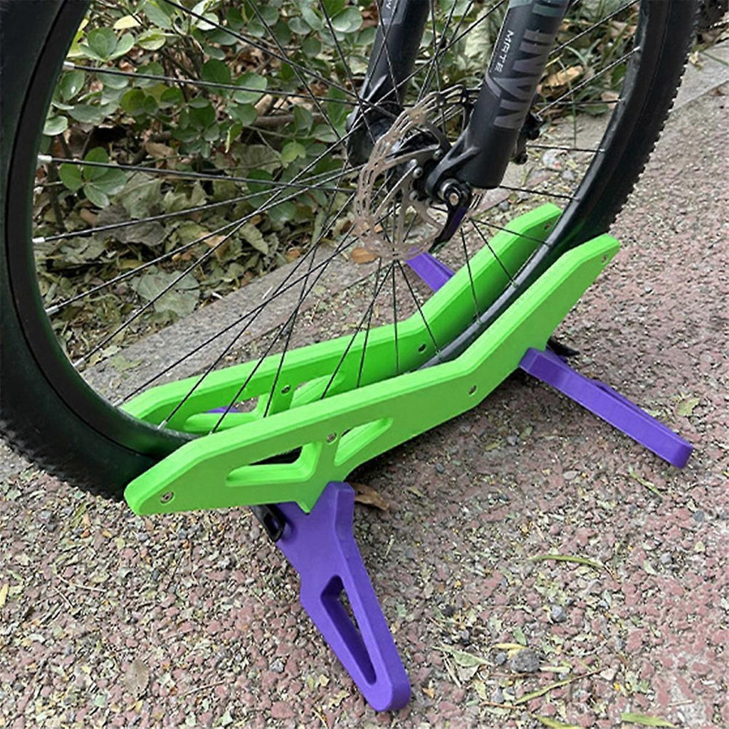 1. Full-Tire Support: This bike parking stand is designed to fully encase the tire, providing a stable support that prevents tipping and offers a secure storage solution for your bicycle. 2. Adjustable Width: Accommodate any bike with ease, as this indoor bicycle stand adjusts from 26 to 80mm in width, making it a perfect fit for both road and mountain bikes. 3. Interlocking Assembly: With its tool-free interlocking design, this bike storage stand is a breeze to assemble and disassemble, offering a convenient and space-saving solution when not in use. 4. Heavy-Duty Stability: Engineered for high capacity and stability, this mountain bike rack can reliably support various types of bicycles, ensuring steady storage for both mountain and road models. 5. Slip-Resistant Padding: Equipped with anti-slip pads at the base, the road bike holder ensures a firm grip on the ground, providing an extra layer of stability for your parked bicycle. Colour:Green & Purple / black / orange& blue Material:ABS Package Contents: 1 * Bicycle Stand Only the above package content, other products are not included. Note: Light reflection and different displays may cause the color of the item in the picture a little different from the real thing. The measurement allowed error is +/- 1-3cm.