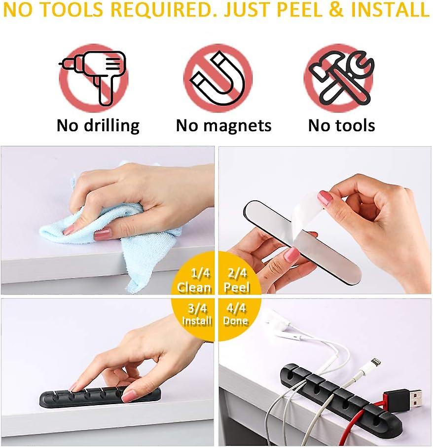 (black) Cable Clip 5 Piece Multipurpose Cable Organizer Kit For Desktop - White