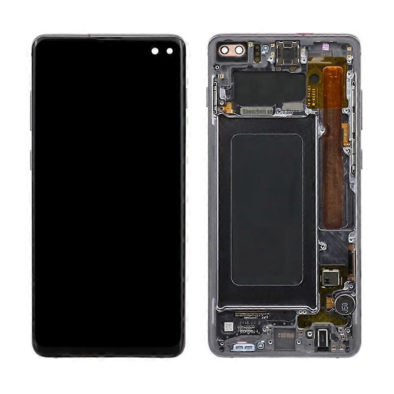 COMPATIBLE Super AMOLED LCD Screen for Samsung Galaxy S10+ Digitizer Full Assembly with Frame Before Installation Notes 1. Tips 1: Test before installation When testing, do not remove any protective film or tags. Please pay attention to the problem of static electricity. Before attempting any repair, be sure to ground yourself is an ESD (electro static discharge) strap. This will prevent static electricity from damaging the electronic components within the phone. Ensure you wear eye protection and use caution not to cut your finger with the glass splinters. 2. Tips 2: Simulates testing Screen replacement is very fragile product. We strongly suggest test before installation. Please simulates testing, which means mobile phone apart, (motherboard + LCD or screen) connected audio cable and new replacement, power on, test finished. If test OK, please install it. If it can not show, please contact us at the very first time. And please do not force it to be installed in mobile phone. We will not be responsible once the screen is installed. 3. Tips 3: Do not over-bend cable Please make sure LCD cable Do not over-bend. Over 90 degrees bent will cause black display. About the product 1. Replacement LCD display + touch screen digitizer assembly with frame for Samsung Galaxy S10+. 2. Replace the old, broken, cracked, damaged one. 3. Make your device look more refreshing than ever. 4. Completely fit and work. 5. Each item has been checked and in good condition before shipping. 6. Professional installation is highly recommended. We will not be responsible once the screen is installed.