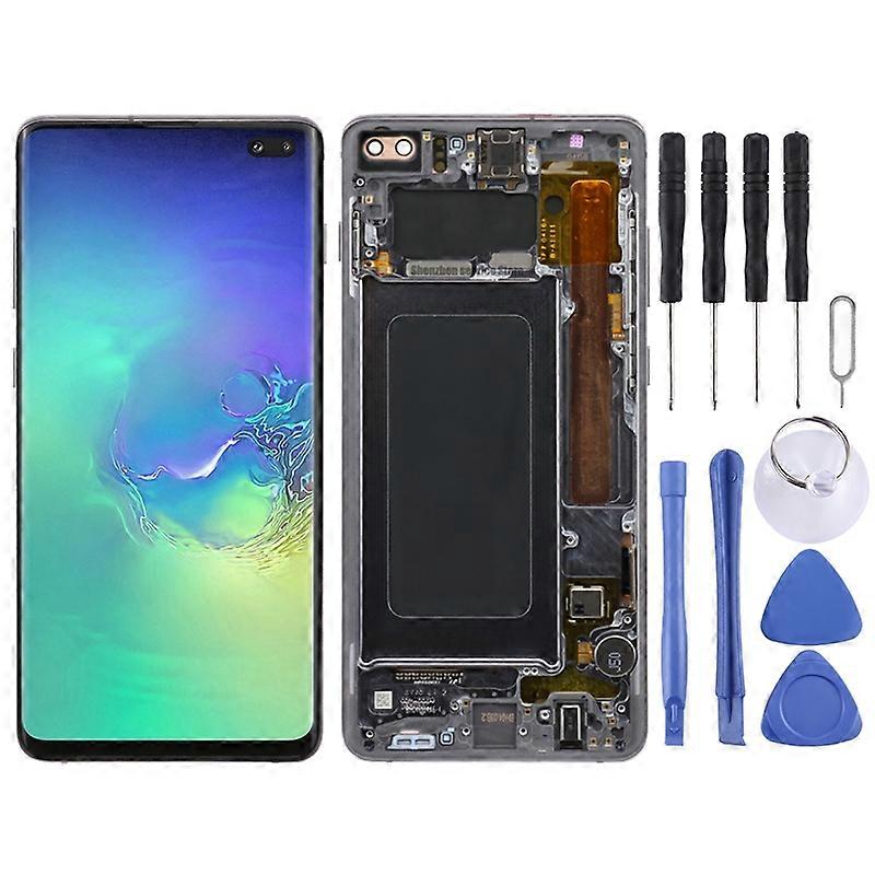 (Black) COMPATIBLE Super AMOLED LCD Screen for Samsung Galaxy S10+ Digitizer Full Assembly with Frame