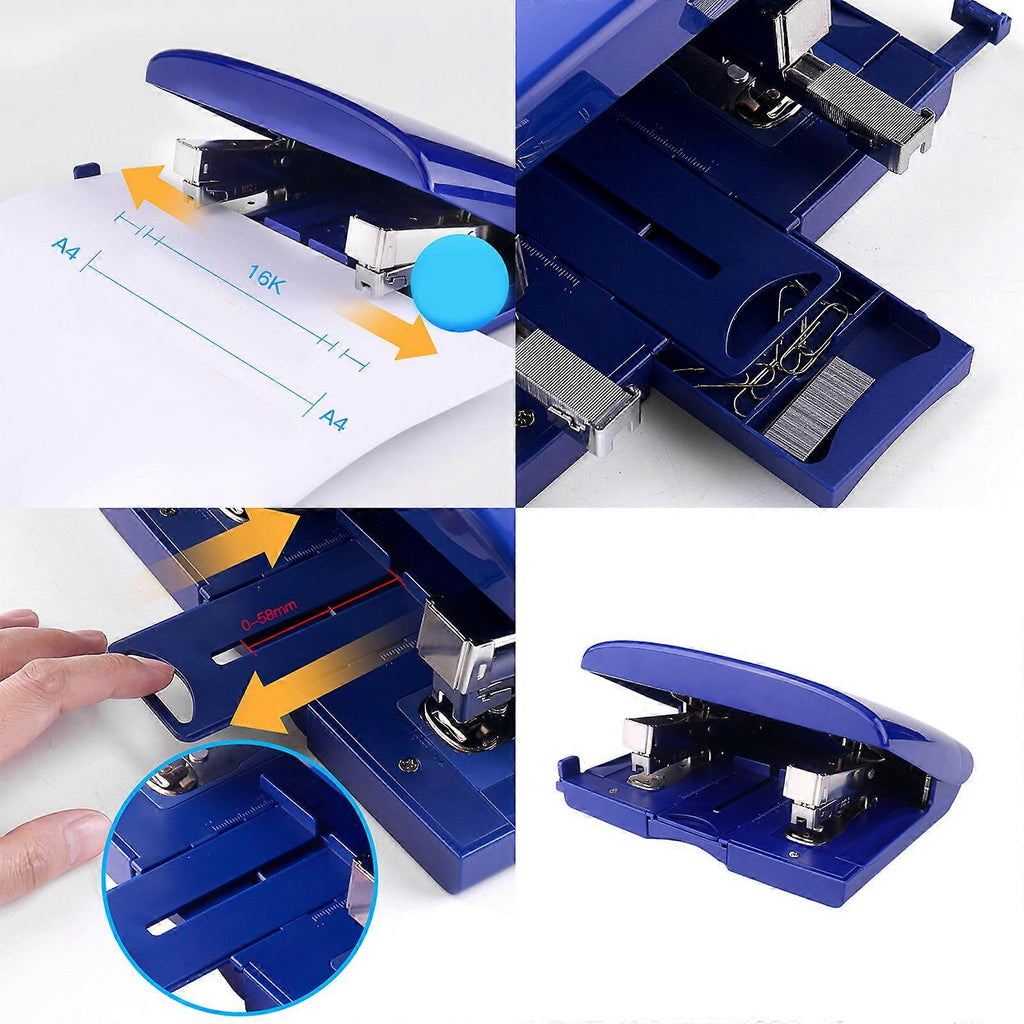 Features: Experience the blend of stylish and functionality with our Double Head Stapler with Folding Side Alignment Guide, built in storage case for organzing small paper clip, staple, and other small items. Designed to bring efficiency to your work place. Crafted from pp and iron metal, this heavy duty labor-saving stapler features smooth internal track that minimizes staple jams, ergonomic handle for comfortable grip, ensuring seamlessly binding. Very suitable for students, teacher, office workers, and home users who is appreciate easy to use stapling machine, this office basic stapler is must have binding tool for organizing document and file paper. Widely use for office, school, warehouse, and home. 50 sheets capacity. it effortlessly tidies up your paper binding work while adding a touch of stylish to your environment. This double ended desk stapler labor-saving stapling machine Fit on 24/6, 23/6, 23/8, 24/8 Staple (not included), making it essential addition to any office desk setup. Specifications: Color: Black; Blue Component: PP; Metal Size: Approx. 22.3x18.4x11.8cm/8.77x7.24x4.64in Weight: Approx. 1400g; Package Includes: 1Piece Double Ended Desk Stapler note: 1.Please allow 0-1cm error due to manual measurement. Be sure you donot mind before bid. 2.Due to difference between different monitors, the picture may not reflect the actual color