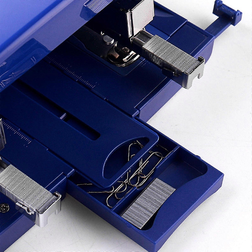 Features: Experience the blend of stylish and functionality with our Double Head Stapler with Folding Side Alignment Guide, built in storage case for organzing small paper clip, staple, and other small items. Designed to bring efficiency to your work place. Crafted from pp and iron metal, this heavy duty labor-saving stapler features smooth internal track that minimizes staple jams, ergonomic handle for comfortable grip, ensuring seamlessly binding. Very suitable for students, teacher, office workers, and home users who is appreciate easy to use stapling machine, this office basic stapler is must have binding tool for organizing document and file paper. Widely use for office, school, warehouse, and home. 50 sheets capacity. it effortlessly tidies up your paper binding work while adding a touch of stylish to your environment. This double ended desk stapler labor-saving stapling machine Fit on 24/6, 23/6, 23/8, 24/8 Staple (not included), making it essential addition to any office desk setup. Specifications: Color: Black; Blue Component: PP; Metal Size: Approx. 22.3x18.4x11.8cm/8.77x7.24x4.64in Weight: Approx. 1400g; Package Includes: 1Piece Double Ended Desk Stapler note: 1.Please allow 0-1cm error due to manual measurement. Be sure you donot mind before bid. 2.Due to difference between different monitors, the picture may not reflect the actual color